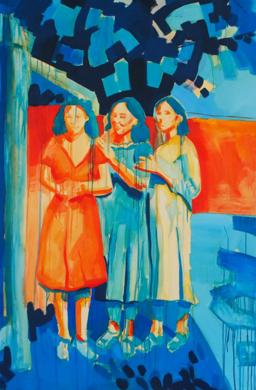 I focus on creating "painted spaces" rather than focusing on a realistic depiction, as it’s within these painted spaces that limits and boundaries of time are blurred. An opportunity for a collage of languages, landscapes, experiences, and reunions that exists out of reality is presented. It’s also important to me that the end result does not hide away from its paint origins. I want the materiality to be grounding to viewers, reminding them of the artist’s touch.