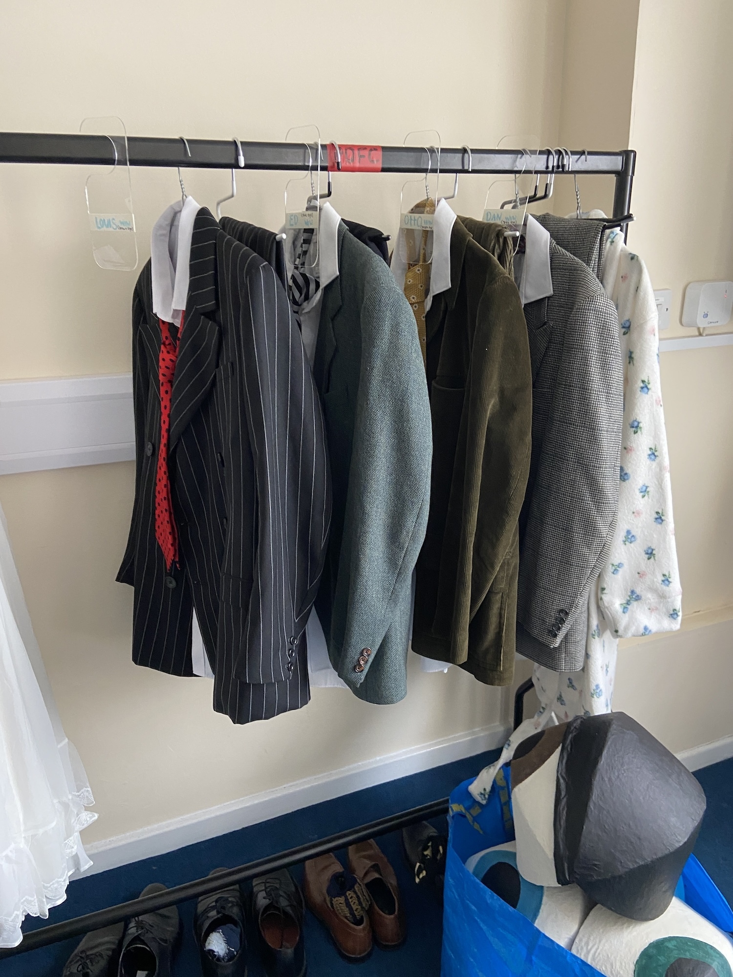 One of Lizzie’s favourite parts of the process is sourcing. Sourcing means “trying to find the perfect garments within the budget to fit design ideas, while staying in contact with the director to make sure everything works.” She explains that it also involves “cross-referencing this with actor measurements to deliver fully realised costumes.”