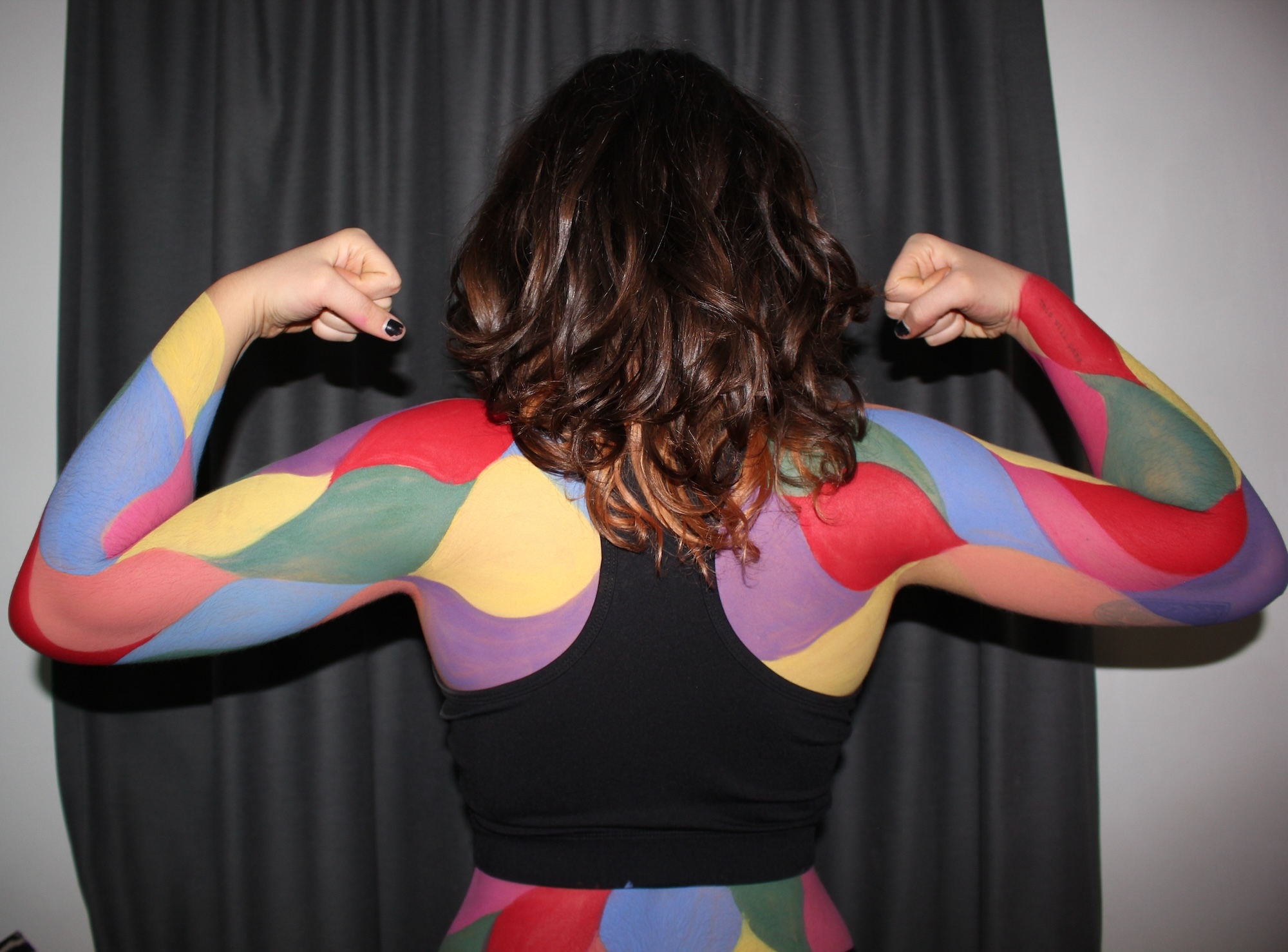 My favourite project was my final art piece for our end-of-term exhibition. I had been interested in body painting for quite a while, so to finally be able to do it was super exciting for me. I found being able to paint some of my flatmates and new friends from uni a really nice bonding experience, as we got to chat and get to know each other more. I also found it really satisfying to let loose and paint in any way I liked, it was a great starting point for my journey at AUB.