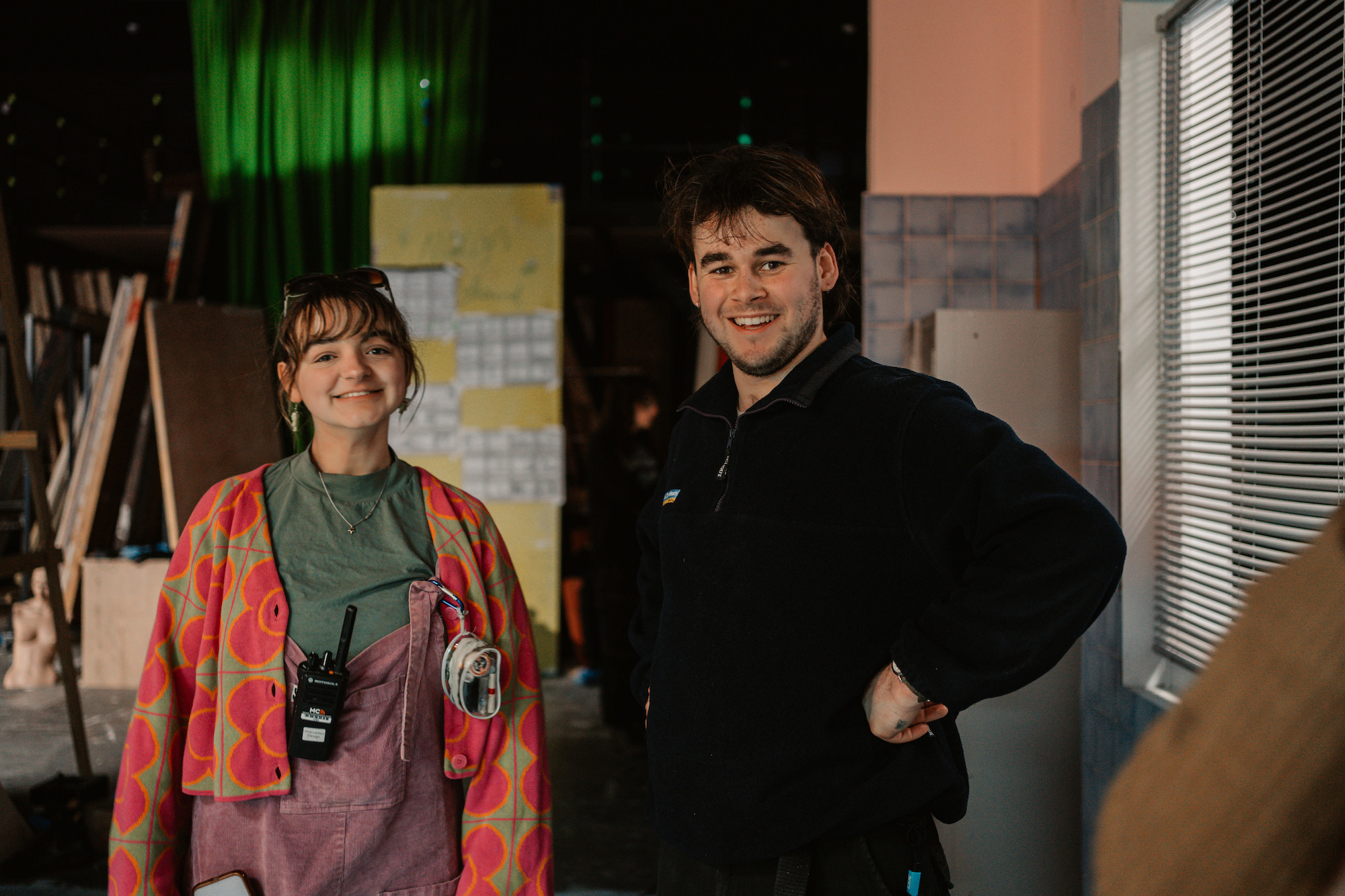 We’ve just finished our time at AUB studying BA (Hons) Film Production, both specialising in Production Design, in which we oversee the design of everything in front of the camera. Designing and building sets, making real locations fit our fictional worlds and filling them with props and furnishings that we both make and find.