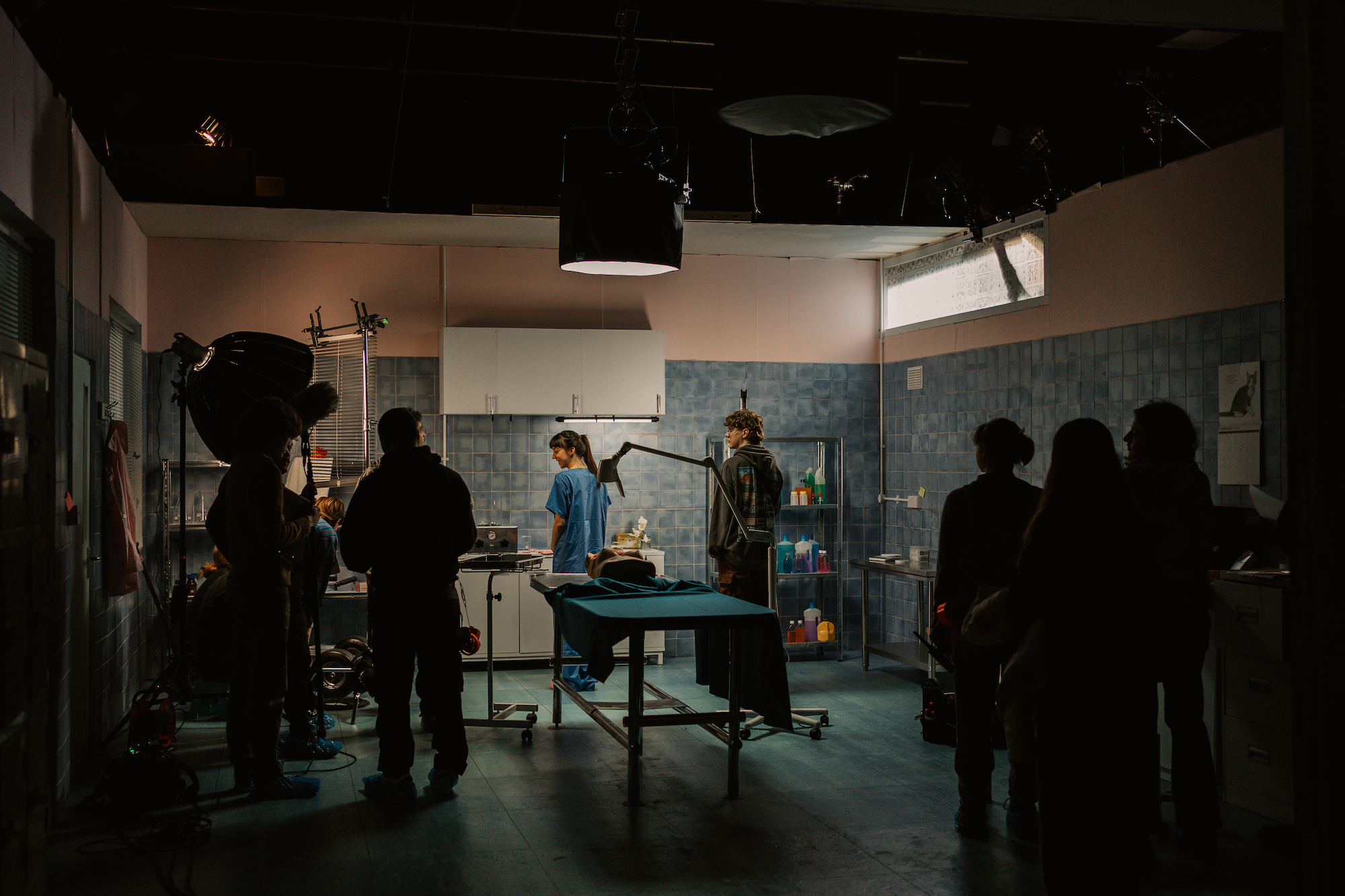 The mortuary was designed for a very particular character, Debbie. Debbie is a female mortician in a masculine-dominated environment, which is the motivation behind the pink in the space. She is reclaiming the sterile, blue and "masculine" mortuary space with outrageous femininity and authenticity, as represented in the colour pink and the way it is used in the space. This gave us an opportunity to really stylise the set and go in a more theatrical direction. We drew inspiration from films like Peter Greenaway’s The Cook, The Thief, His Wife and Her Lover, for their recognisably real, but delightfully obviously designed sets, using colour, layout, shape and texture not to replicate reality, but to build the world of the story.