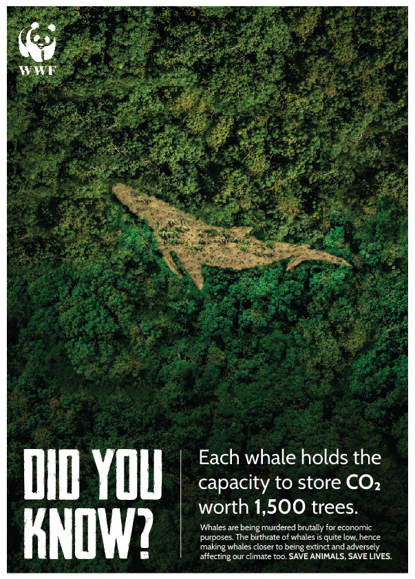 “Killing whales is equivalent to cutting down thousands of trees, as whales absorb tons of carbon dioxide from the air and release it under the water. This activity by the whale balances carbon dioxide in the atmosphere.”