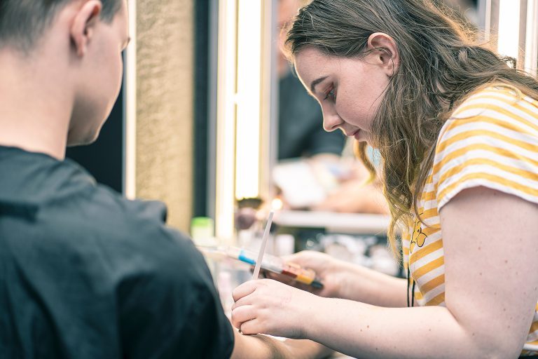 There are a lot of different skills I’ve learned, my main skill are prosthetics, but we also did wigs, theatre, fashion… You learn so many different skills, which is really good.