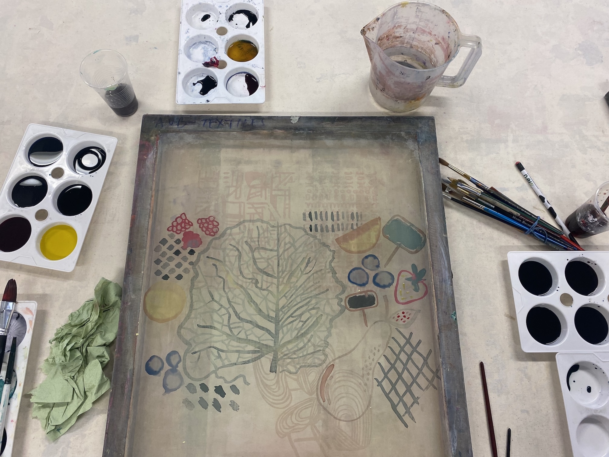 It felt strange at first to be painting straight onto a screen, but for trials and exploring ideas it’s a good way of starting, because you just have to begin and can’t overthink it too much. You can’t take back what you have done, unlike with drawing where it can be rubbed out. You can also lay a piece of paper below the screen with a drawn design on it and then almost “trace” over it, so it feels less daunting than filling a blank space freehand.