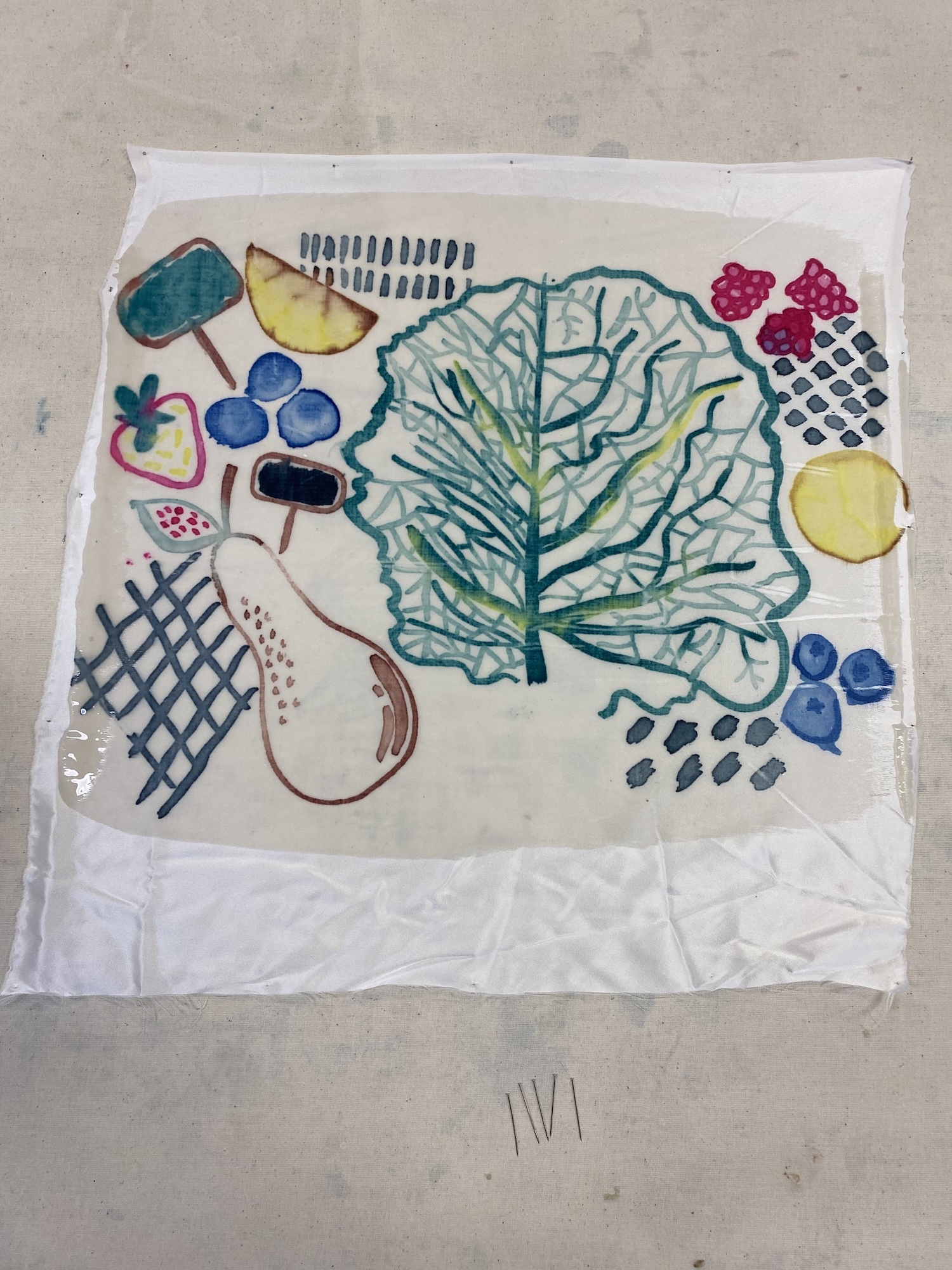 I can see this fitting well into a project based on organic themes like florals, where fluidity and motion is appropriate. If I do another fashion project in the future I might use it here, where the fabric is lighter and floatier to match the watercolour style. For me, I prefer screen printing with set, exposed artwork that’s consistent as I don’t do much illustrative drawing myself. However, I definitely enjoyed this process and would be open to trialling it again in the future for background patterns or mark-making textures.