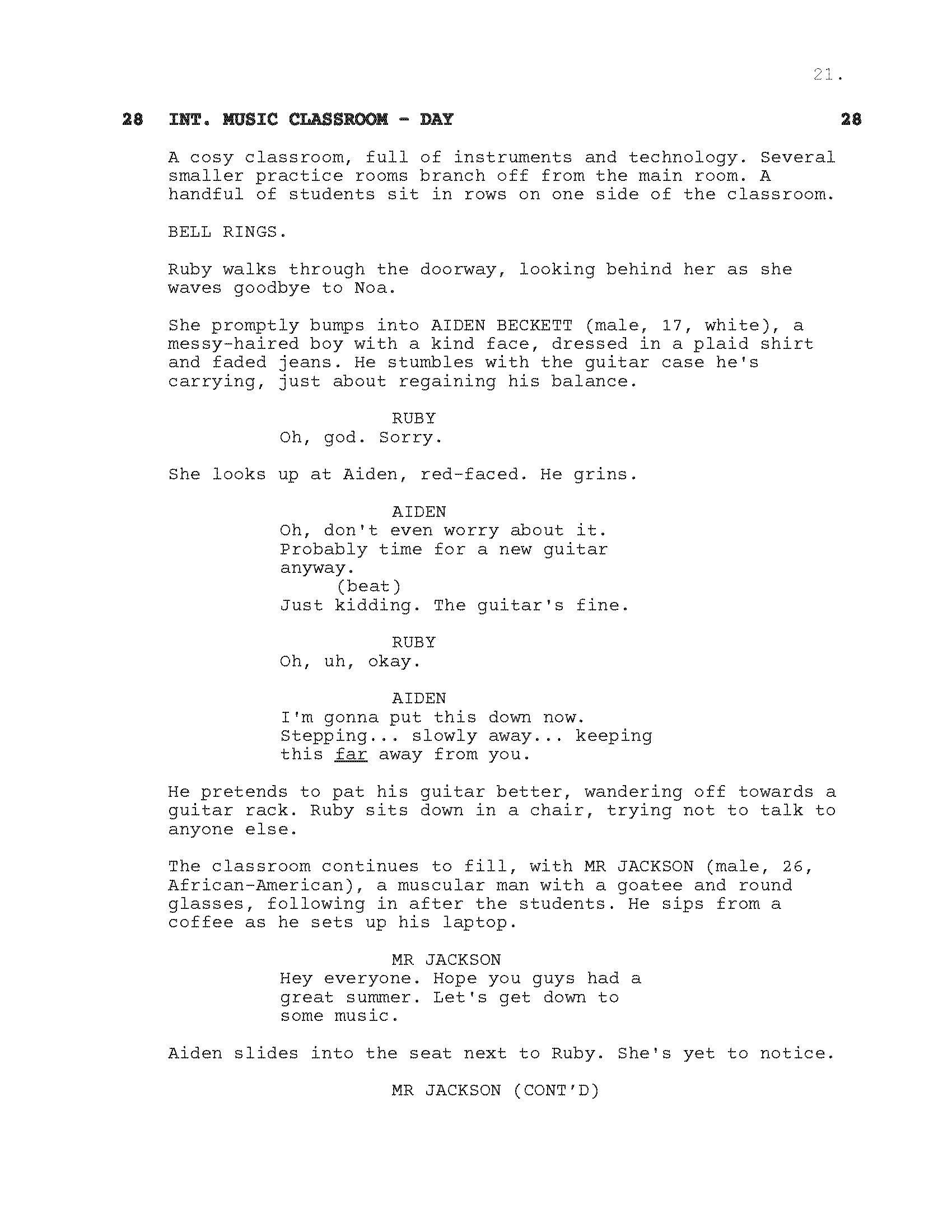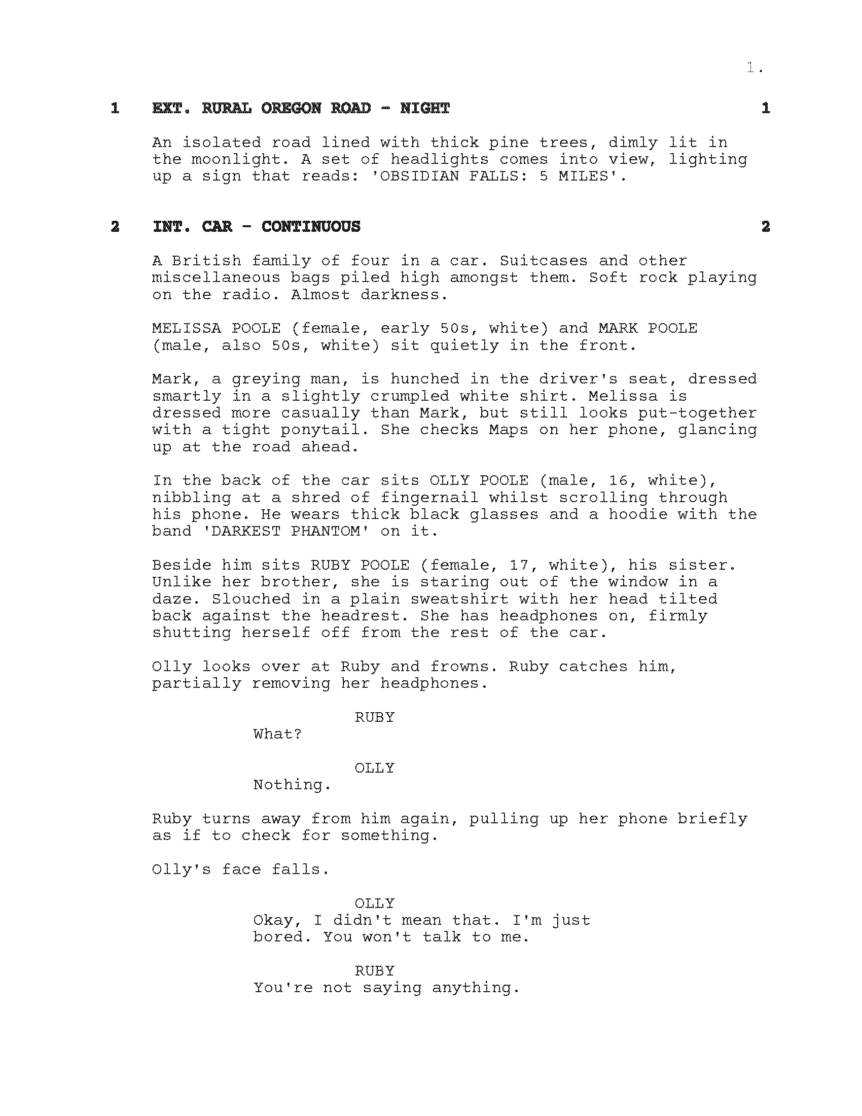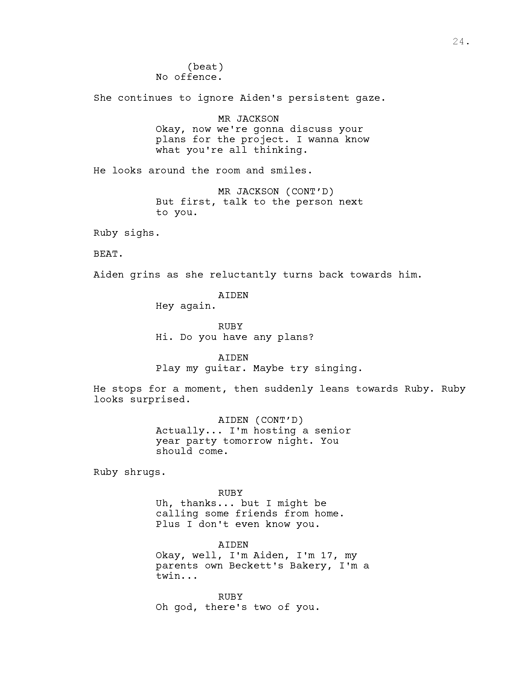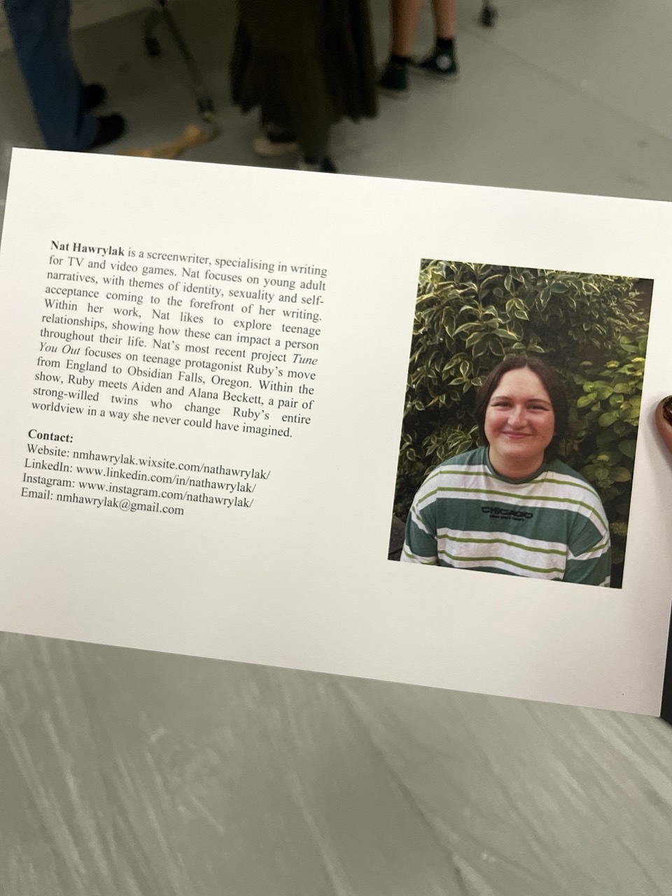 Within my final year, I have spent most of my time creating this – the script for a young adult television show following the experiences of a girl struggling with self-identity and loss whilst navigating her family’s transatlantic move to Oregon. Within my writing, I find it important to tackle topics that are underrepresented in media; I want to create the kind of work I wish I could’ve seen when I was younger. Therefore, my work often includes narratives surrounding sexuality and gender identity, as well as journeys of self-acceptance and diverse character relationships. Representation is so important, and I believe everyone should be able to have the chance to see themselves in the shows they watch.