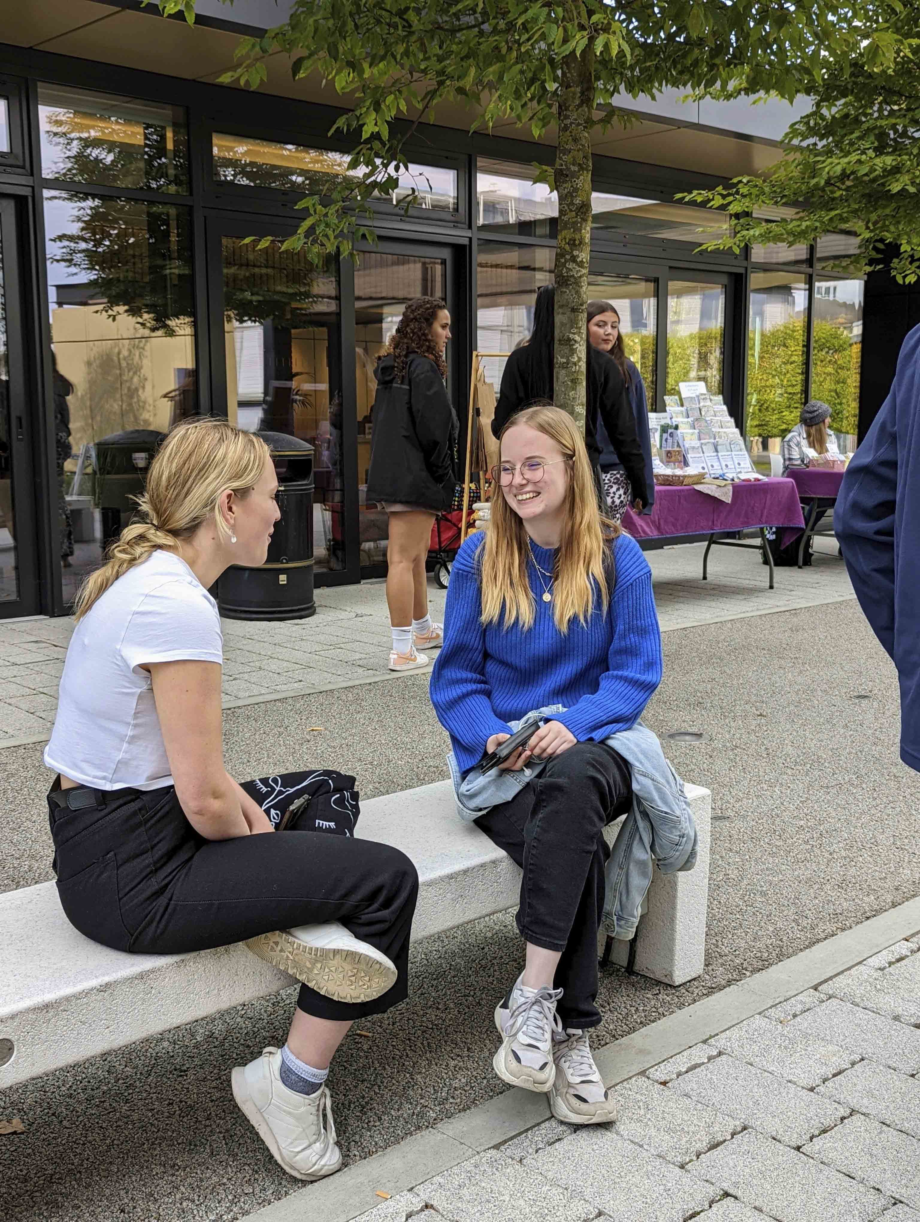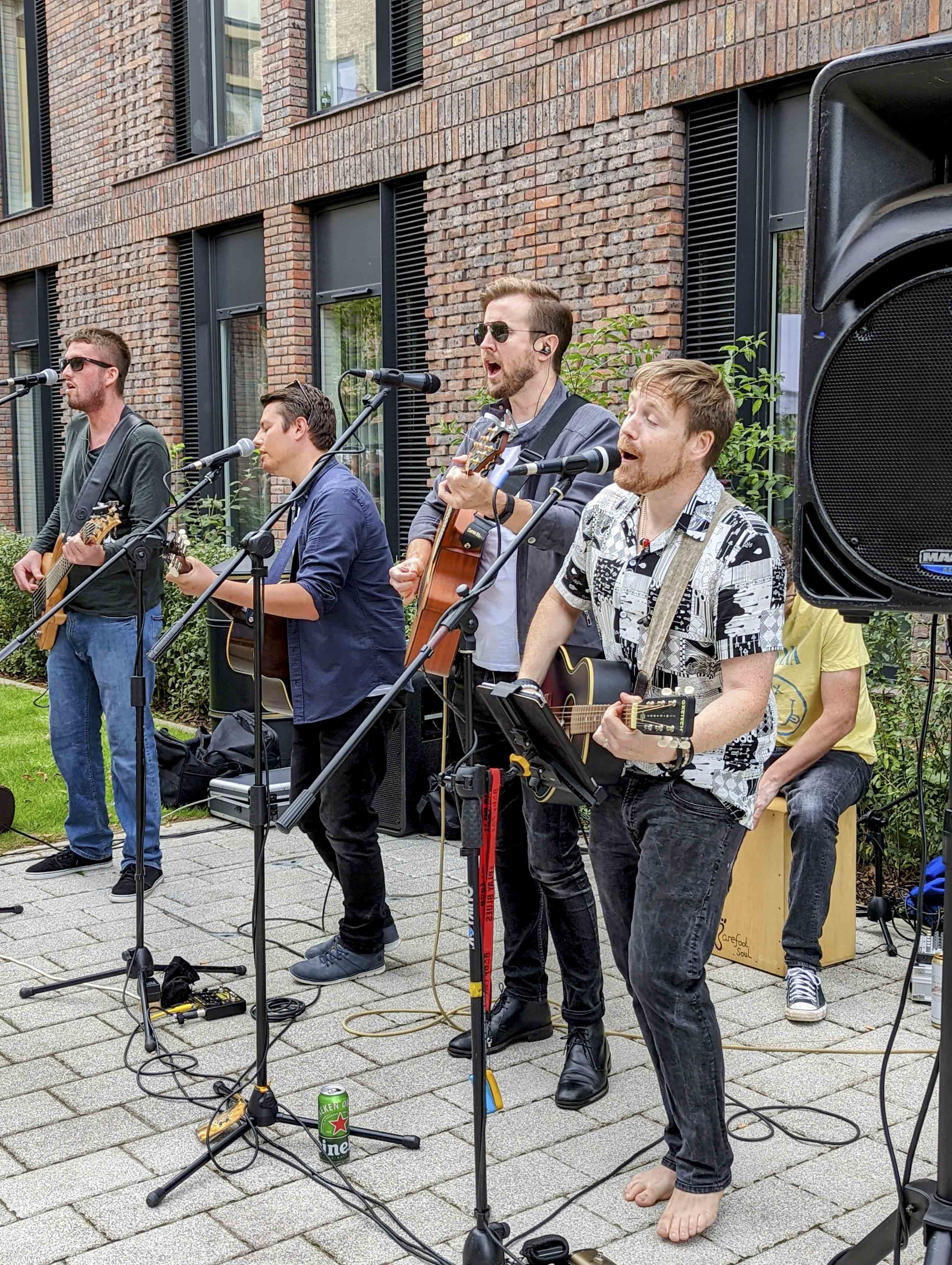 Through Autumnal sunshine, and with a gentle breeze whistling through campus, students and visitors were treated to acoustic live music from local band Barefoot Soul, whose fun and upbeat covers set was interspersed with the band’s own original tunes like Butterfly and Beg, Steal and Borrow.