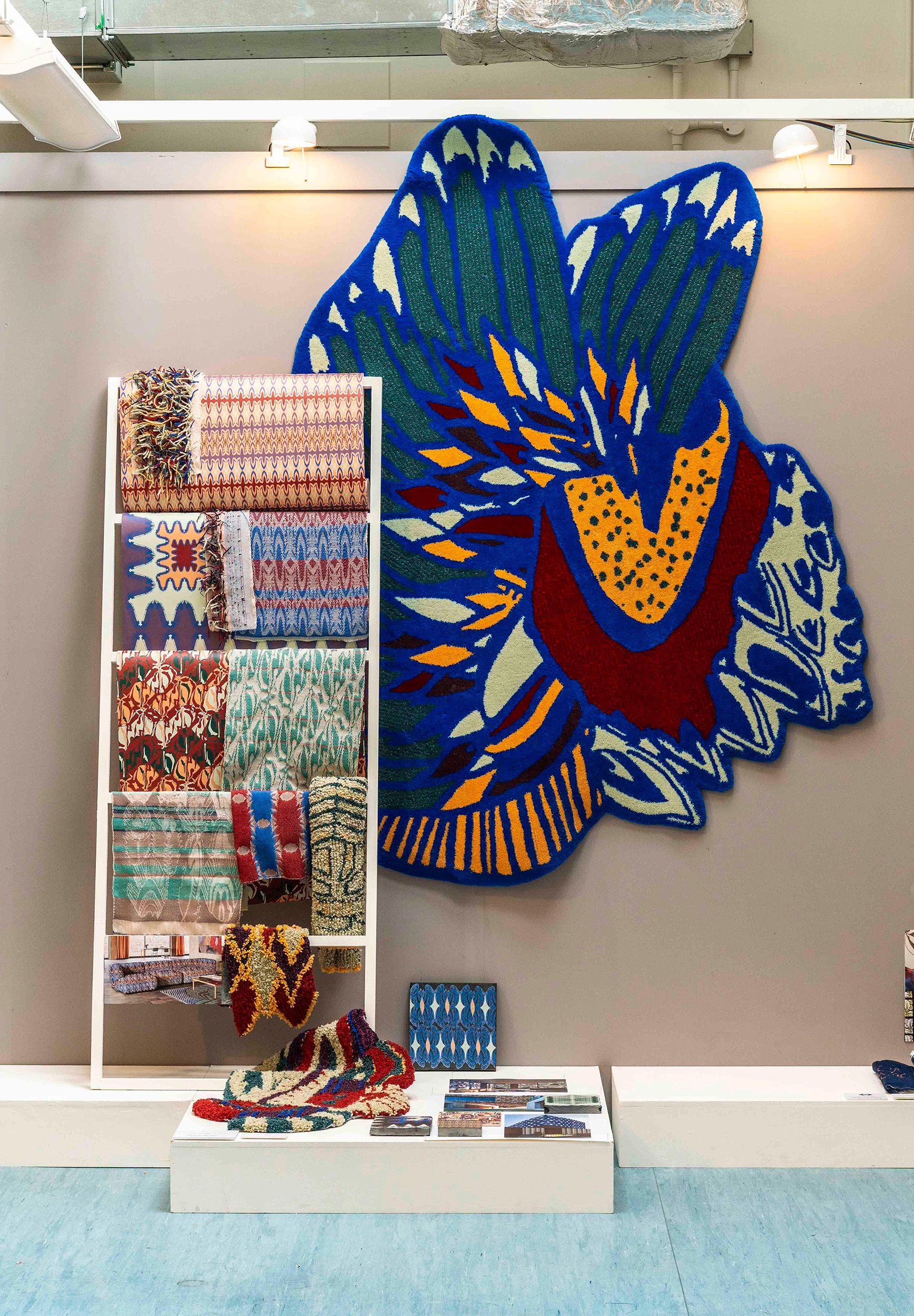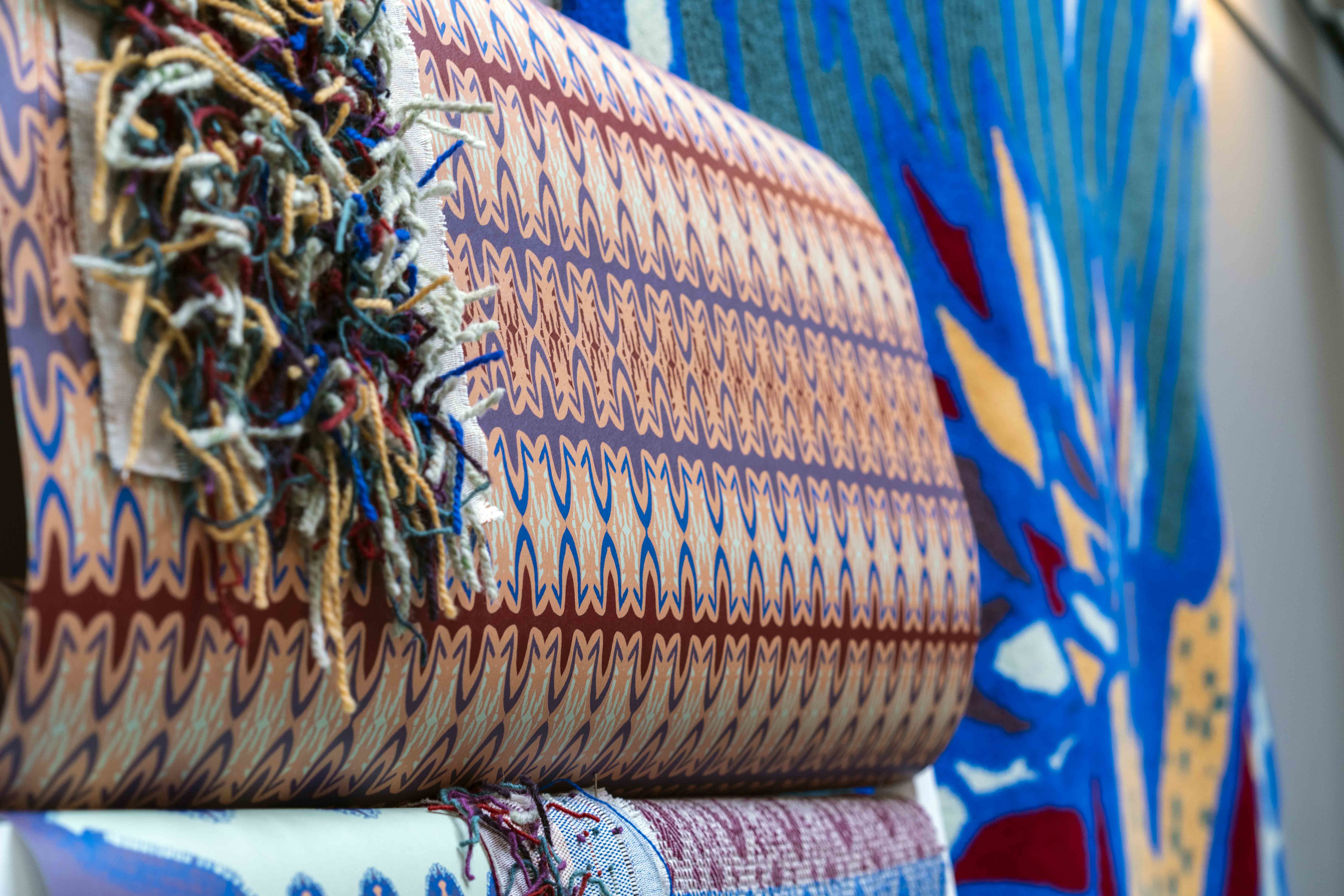 Fleece to Floor has been inspired by game birds and their intricately detailed feathers, which have informed the designer’s drawing, colour, and pattern. The collection incorporates a range of processes and applications including tufting, digital printing and digital jacquard weaving to create furnishing fabrics and surfaces for luxury residential spaces.
