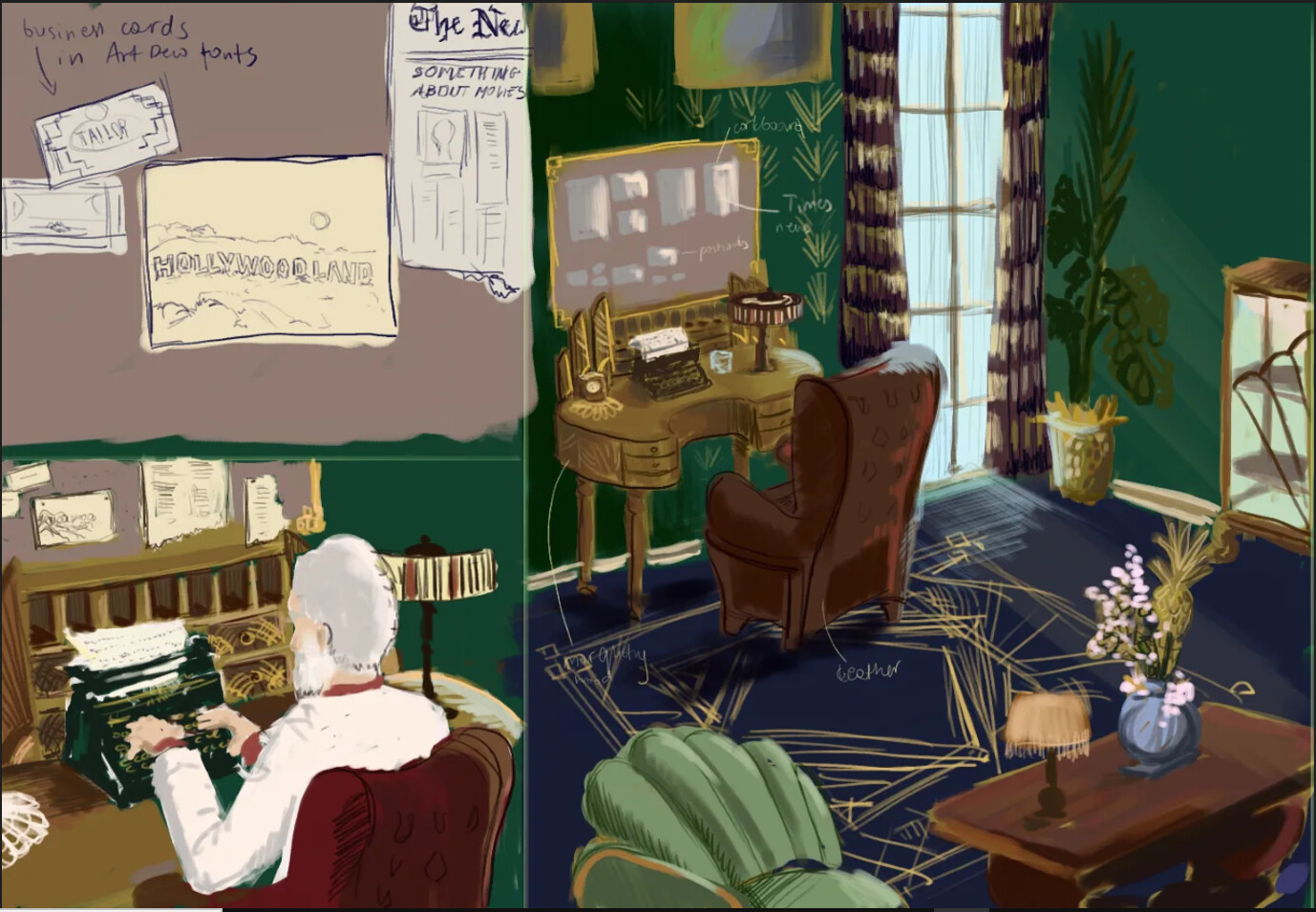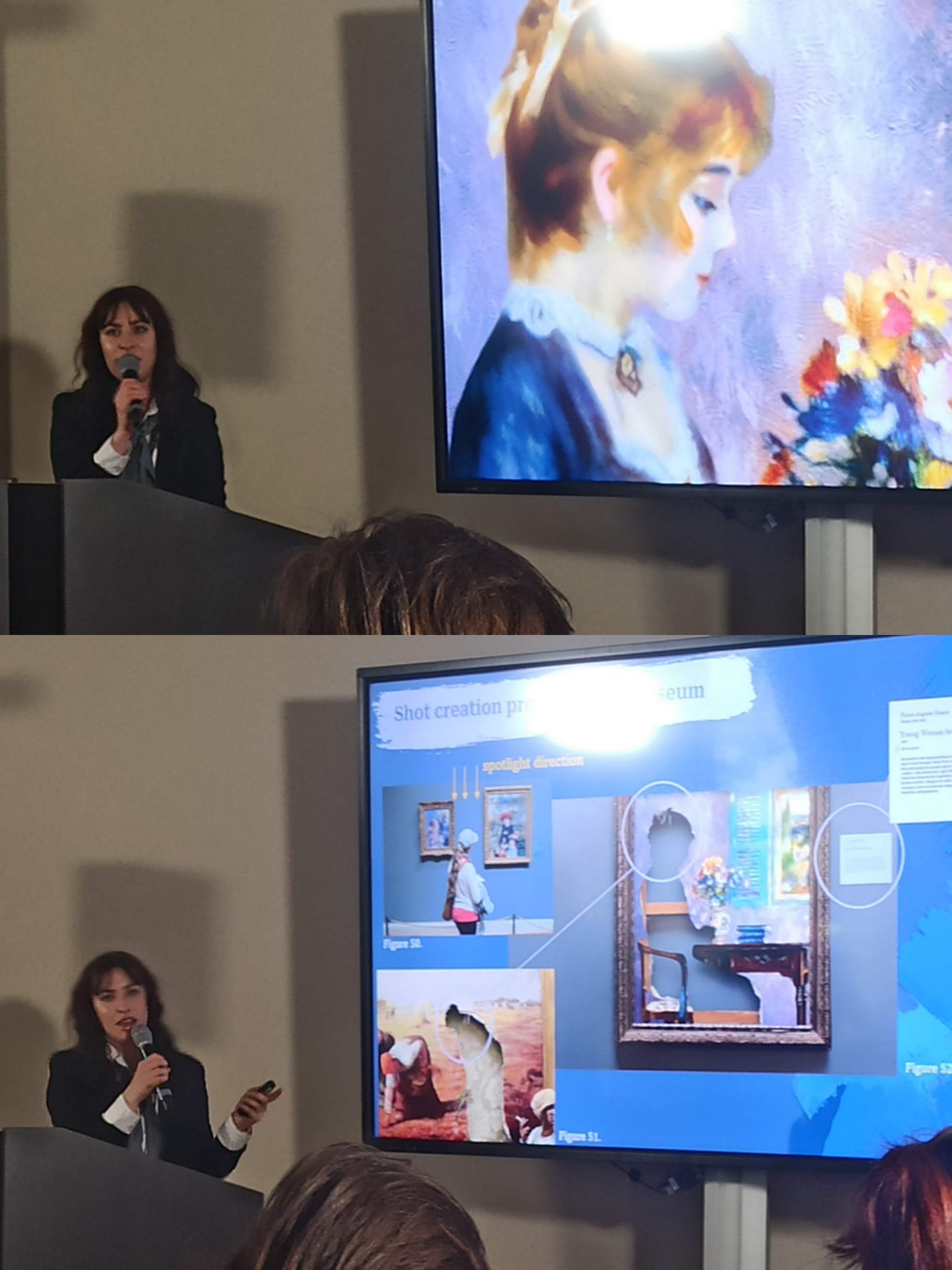 In the research process, I tested various existing methods of neural style transfer, from CNNs and GANs to diffusion models, and compared them in terms of time efficiency, accessibility and ease-of-use. Moreover, I trained project-specific LORA models with the aim of achieving desired results. The research goal is to choose the best combination of techniques to meet the set requirements and perform a style transfer over the composited sequence of images to produce a shot showing a “brought-to-life” Renoir painting – the breaking of the fourth wall.