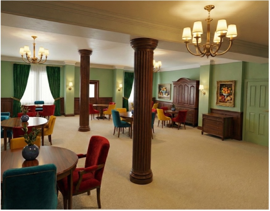 “This was a real challenge. The students had to respond to the constraints of a Grade II listed building while creating a beautiful, cohesive aesthetic. Alongside this, they needed to apply evidence-based design principles for senior living, balancing heritage, functionality and wellbeing.”