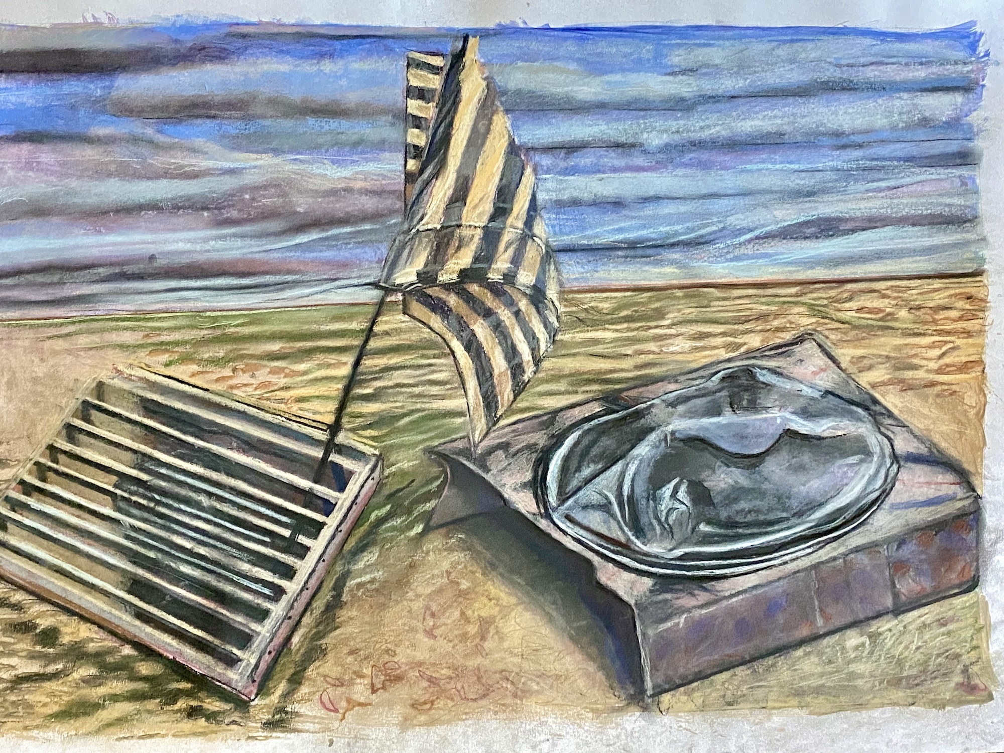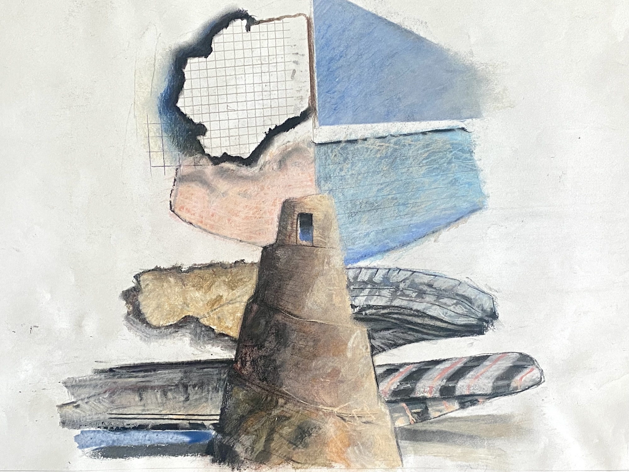"I use a range of media – ink and acrylic as an underpaint, with chalks, pastel and charcoal as the final layer. Though it’s rarely that logical, as all sorts of improvisations happen in the alchemy of the studio. Each piece can take many months as I have a habit of returning to them long after they’re ‘finished’ and on many occasions I’ve taken the work back on site to revisit the original idea.