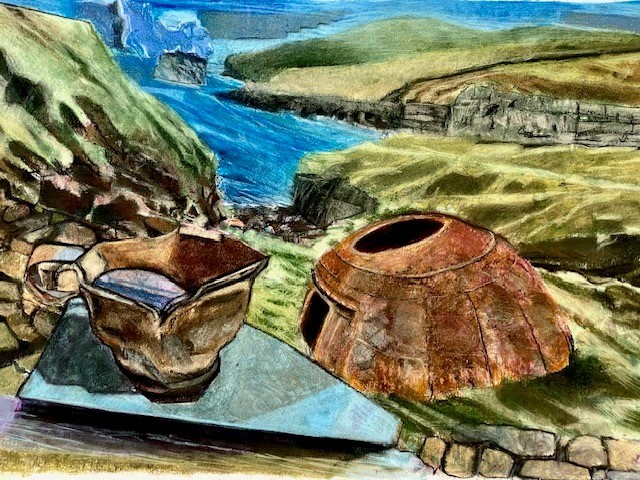 “This pop-up exhibition represents a selection of works from places I’ve come to know and appreciate over the past decade and more. Most of the work was started on location and then completed in the studio. Occasionally the external conditions were simply too hostile for painting or drawing. In the Red Centre of Australia, temperatures of 40˚C were not unusual and working outside was rather challenging. Mind you, holding on to a drawing board in gale force winds off Land’s End offered similar problems, though probably a little less sticky.