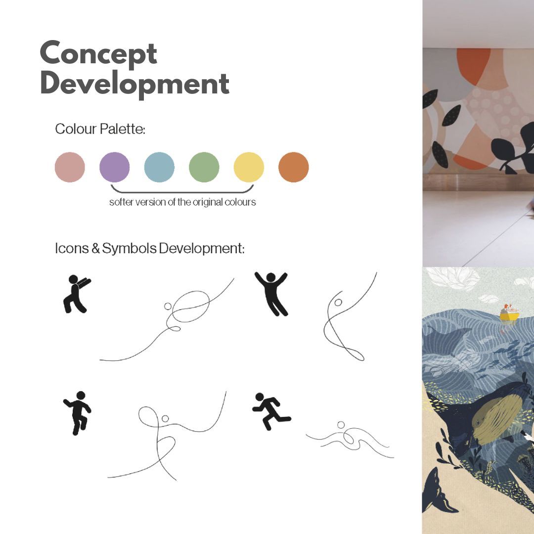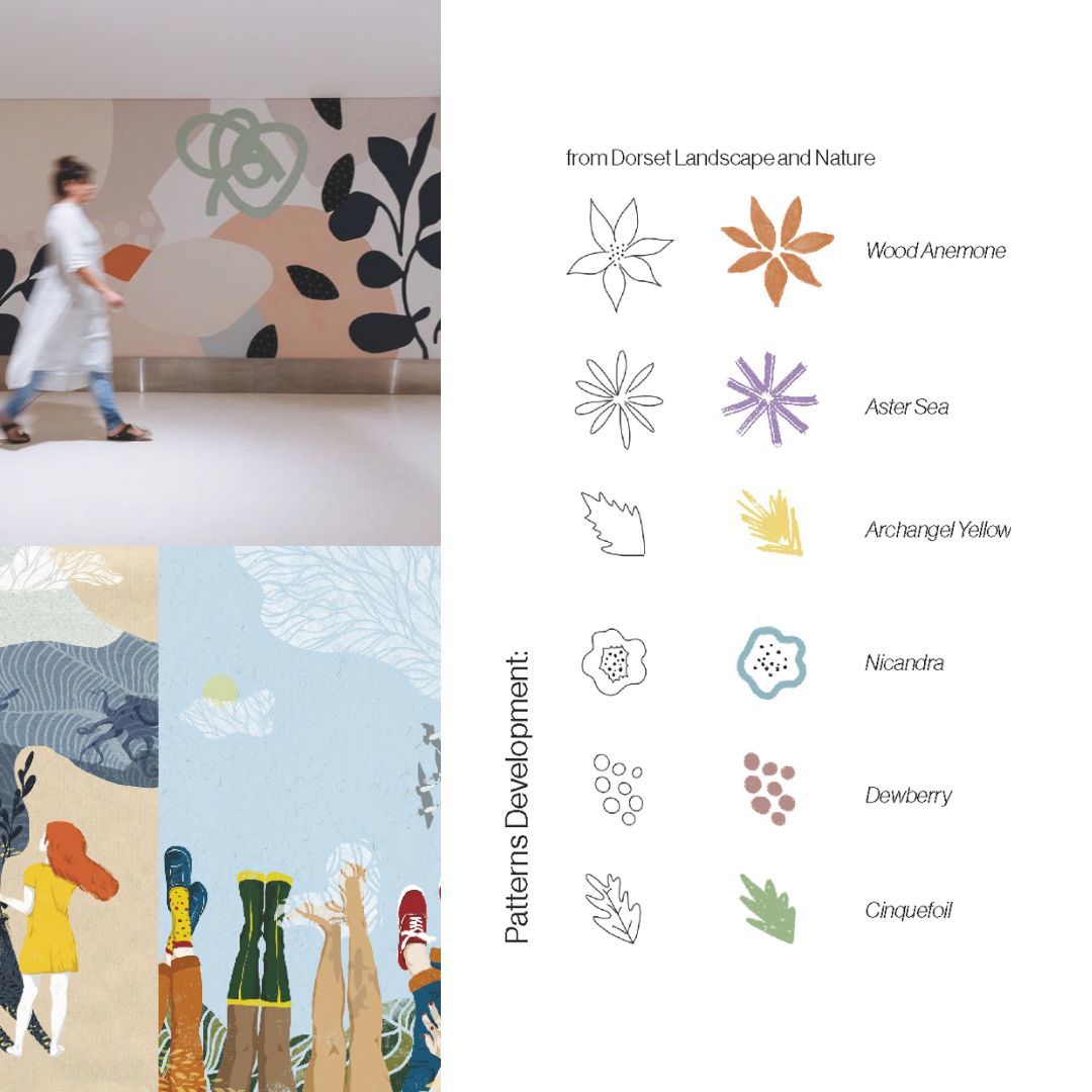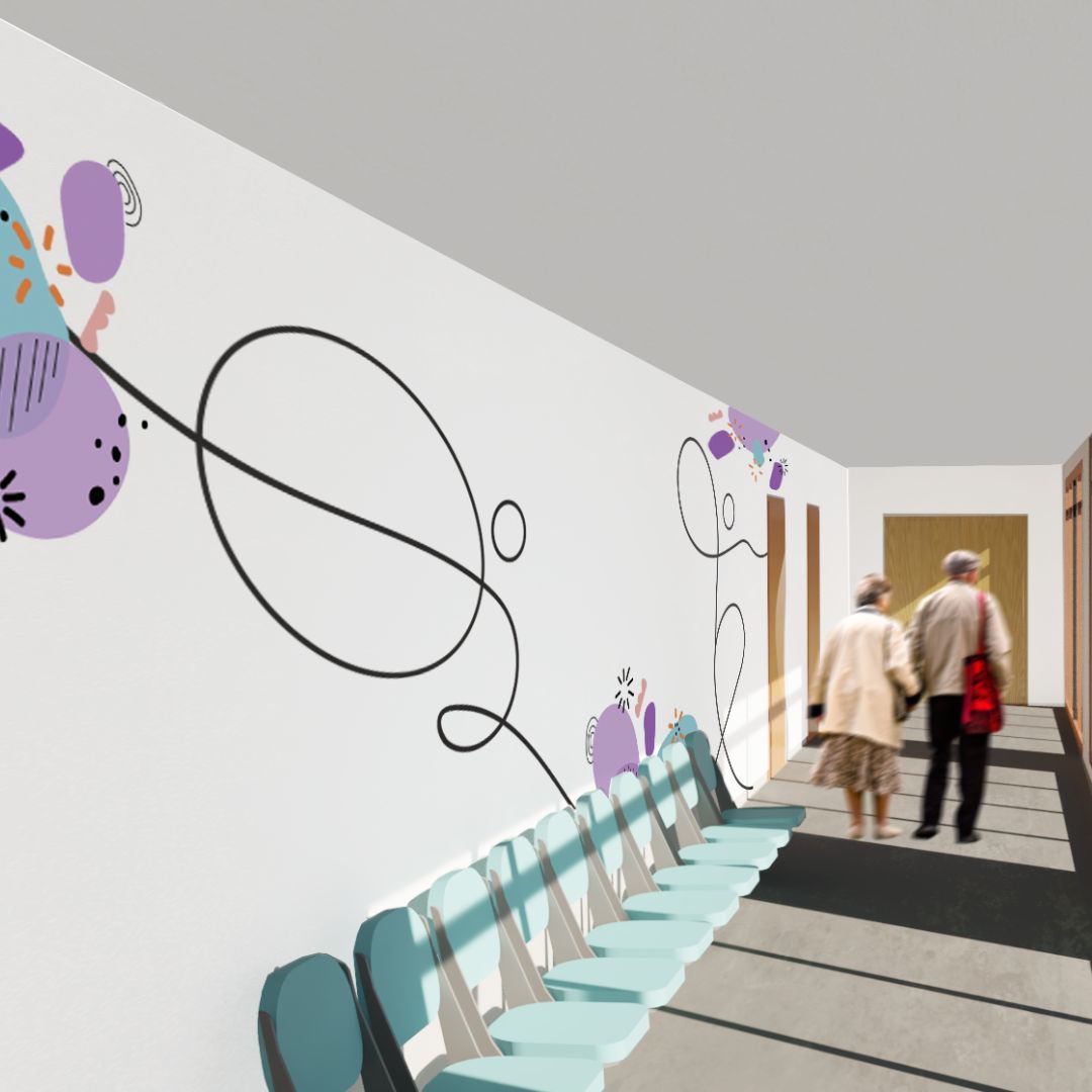 Collaboration was key throughout the project. From the early stages of development to the final presentation, I worked closely with colleagues, stakeholders, and clients. My proposal aimed to captivate and engage users through the use of vibrant colours and abstract shapes inspired by the Dorset landscape. Presenting this concept to a panel of NHS and South Walks House representatives was an invaluable learning experience, and it was an incredible honour when my design was selected as the winning entry for the staff facilities and quiet rooms at the facility. Attending its unveiling made the experience even more rewarding.