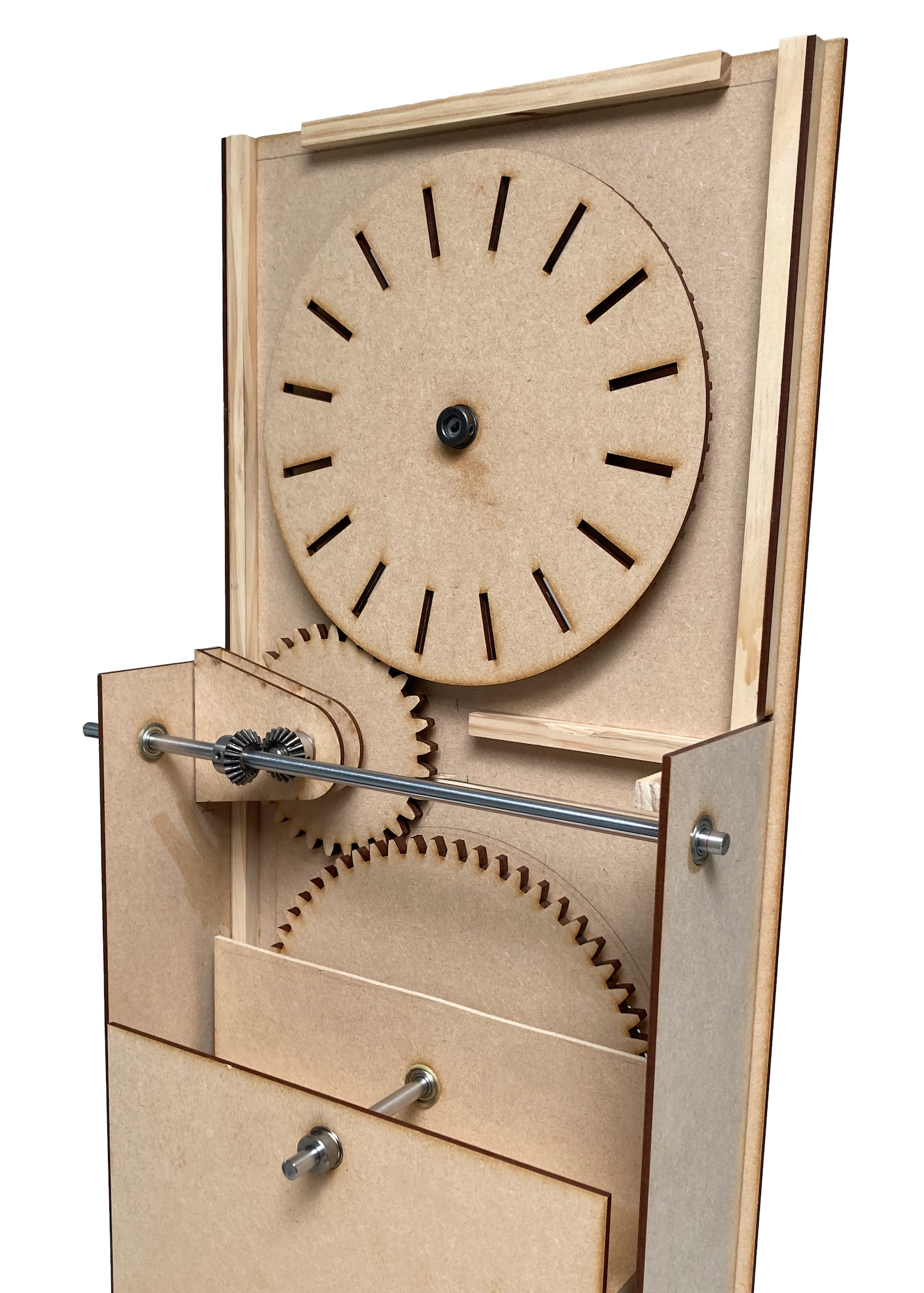 The model was a challenge to design because of the combination of elements that had to be brought together and presented in an eye-catching, stable and user-friendly way. These elements include a Thaumatrope, a Phenakistoscope, an optical illusion wheel complete with spinning sweets, and a pop-out sweet-dispensing compartment. It also incorporates Victorian fairground music and lights. In order to achieve this, I made a six-gear mechanism, which had to be precisely aligned. I found it challenging because I hadn’t done any of these things before.
