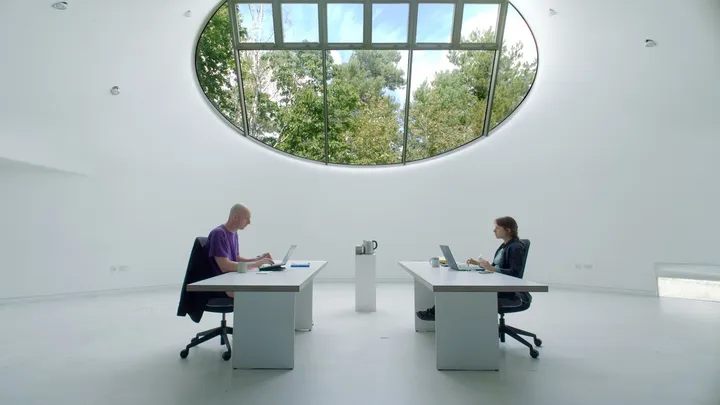 Navigating the subtle tensions of shared space, ambition and power dynamics between two artists in a sterile, cavernous studio, the production of the film heavily involved emerging AUB talent.