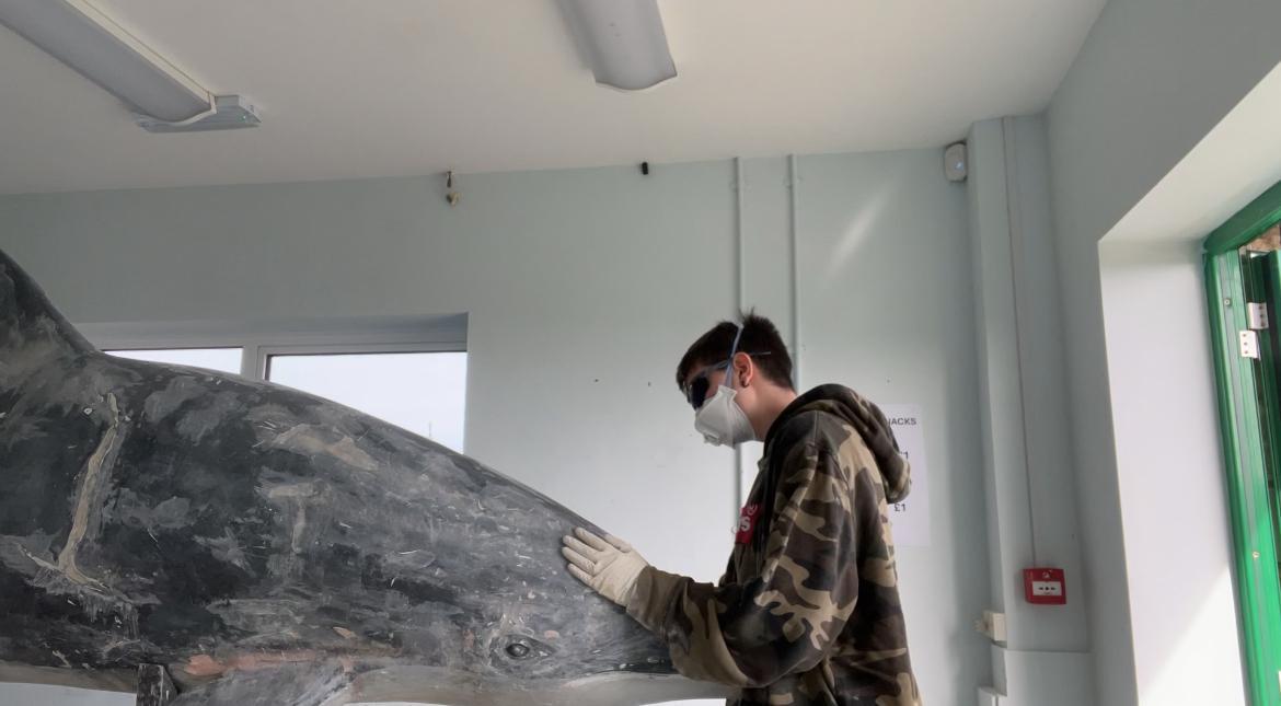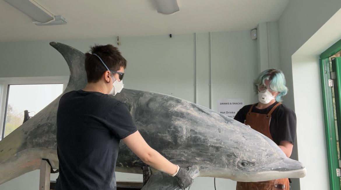 Over summer, we responded to a open request on Facebook from Durlston Country Park about fixing up their dolphin sculpture that had been outside for decades and was in a bit of a state. My friend who is also on our course was the one who noticed the post, had grown up around the area, and suggested we spend a few days down there fixing it up for them.