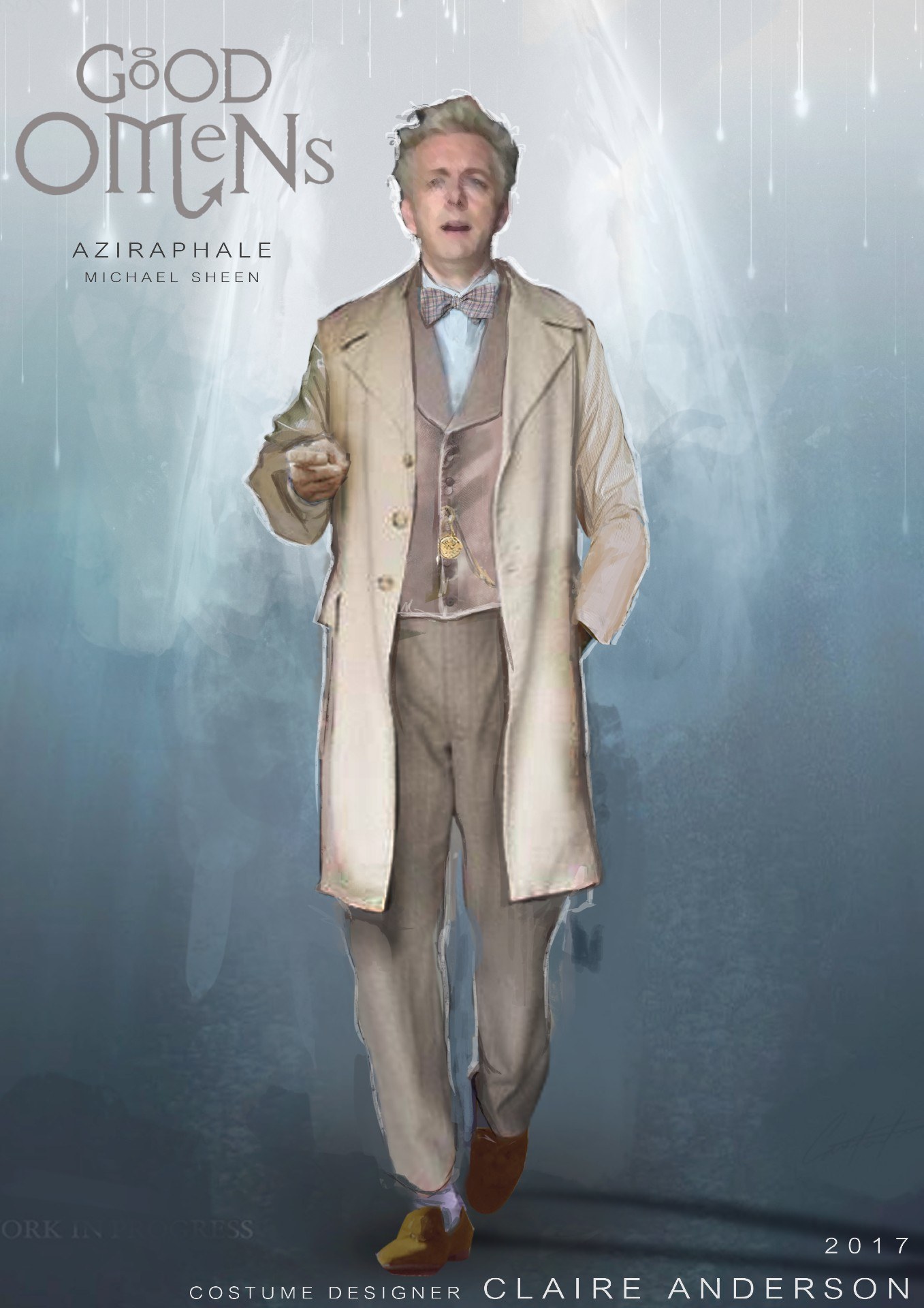 I now work primarily as a costume illustrator. My first job was in the summer between my degree and my masters; as Costume Illustrator for BBC’s Good Omens. Since then I’ve worked on No. 9 Film’s The Limehouse Golem, Netflix’s Winx Club, The Birmingham Rep Theatre’s The Wizard of Oz, BBC America’s The Watch and various Ad campaigns such as TK Maxx’s current Winter campaign. The work is varied between film/tv/theatre and I have to adapt my style for each.