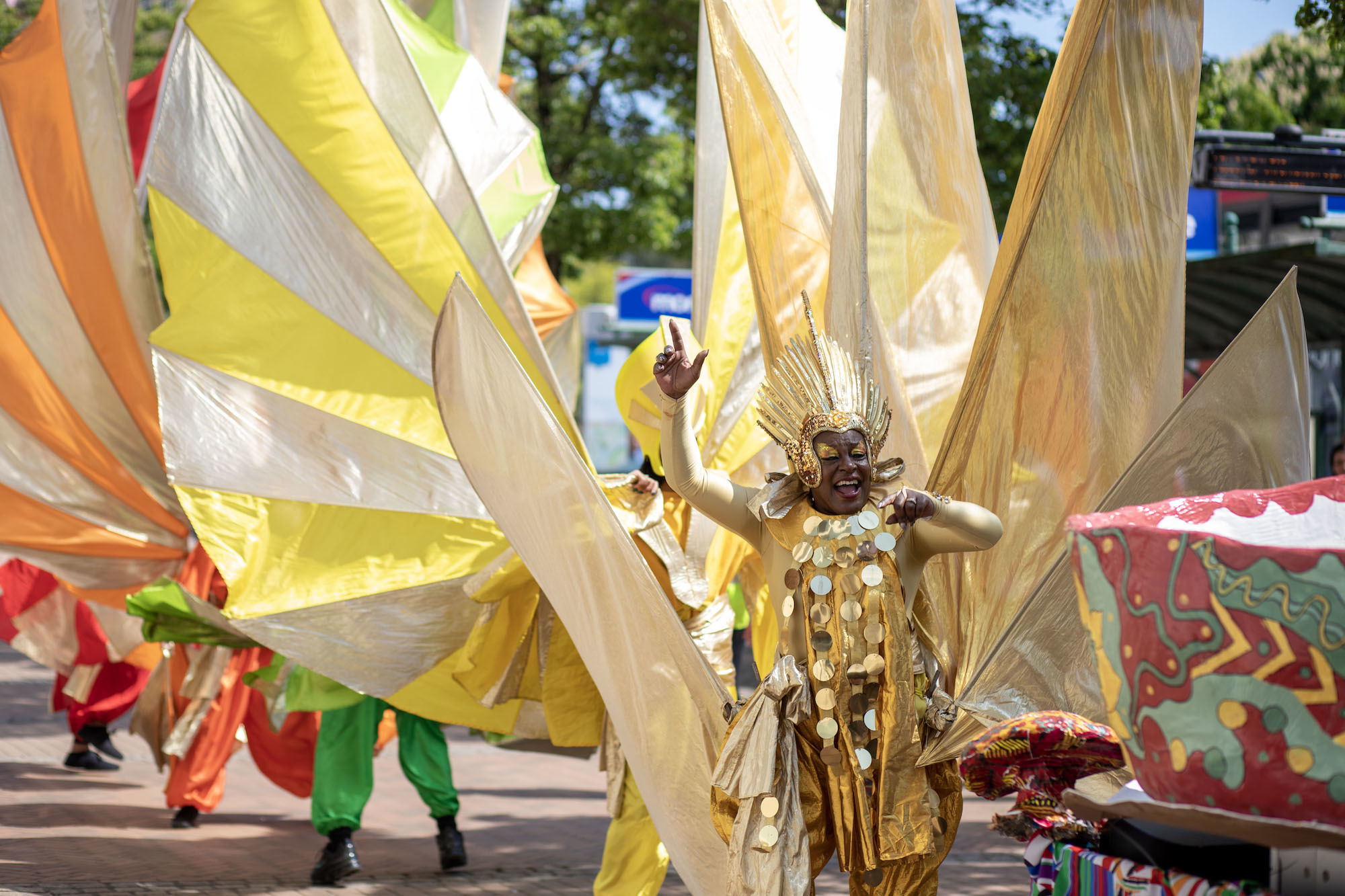 Over the last 35 years, Mahogany has won awards for their staged spectacles, especially at the Notting Hill Carnival. Their carnival ballets feature in national and international events, and you may have spotted them in the London New Year’s Day Parade and the Queen's Platinum Jubilee Parade. Through their high artistic achievement, they've been able to throw a spotlight on the Art of Mas and take their diverse community to the world.