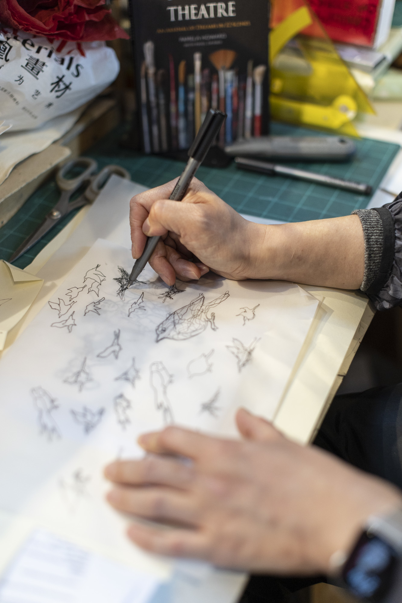 Allan Tsui, on a two-month professional development award from the Hong Kong Design Institute, sits at a desk working on a new project… the latest member in her extended “family” of students and collaborators.