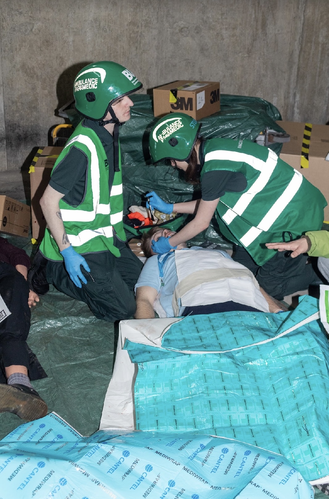 My biggest accomplishment I have taken on board this year was a collaborative project with Bournemouth University for their 2024 medical simulation under the theme ‘Zombie Apocalypse’. It was a collapsed building simulation in an underground car park, using boxes as pillars and a mixture of live and mannequin models. It was a two-day training exercise to help first- and third-year paramedic students and nursing students have a live, interactive experience, guided by healthcare professionals.