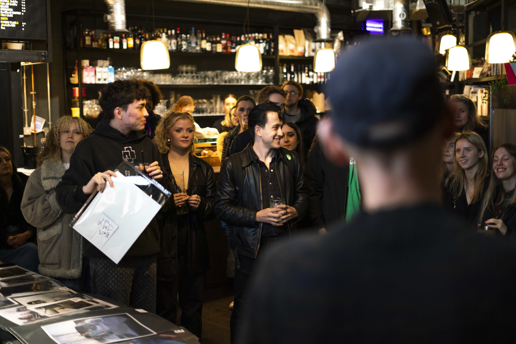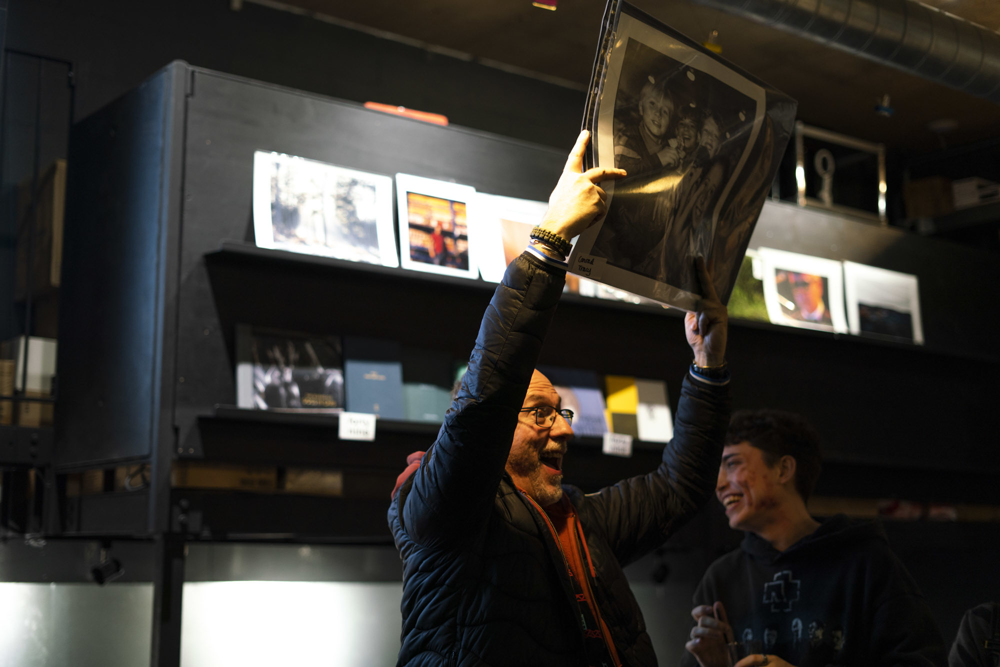 Hosted by the Photobook Café, a popular meeting place and developing lab for current and past AUB Commercial Photography students in East London, the event saw a group of around thirty people bid for works at the café, with a further audience tuning in to take part online.