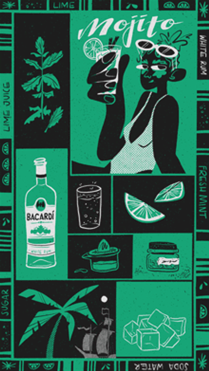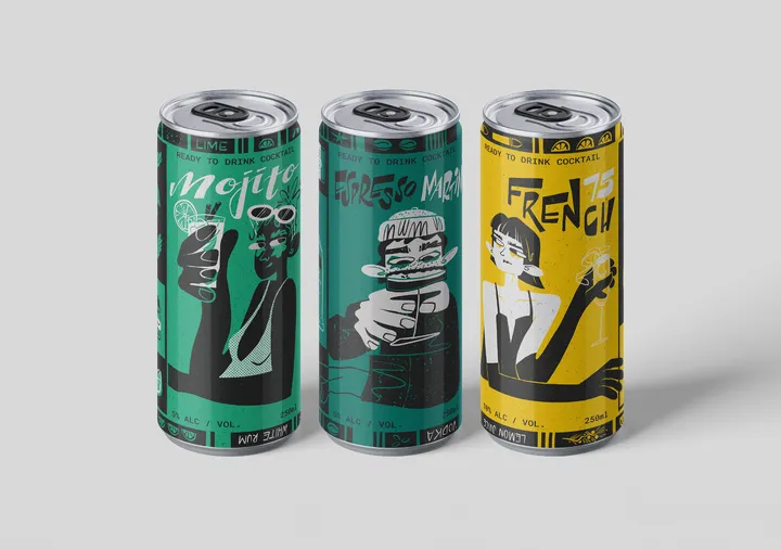 “Ready to Drink Cocktail Cans was part of my Pre-Major Project, a self-directed project I created to develop my style and bring more motion into my practice,” Léane explains. “The idea was to design cocktail cans and promote them through animated GIFs for social media, almost like visual recipes that show the ingredients but also reflect the story behind each drink.