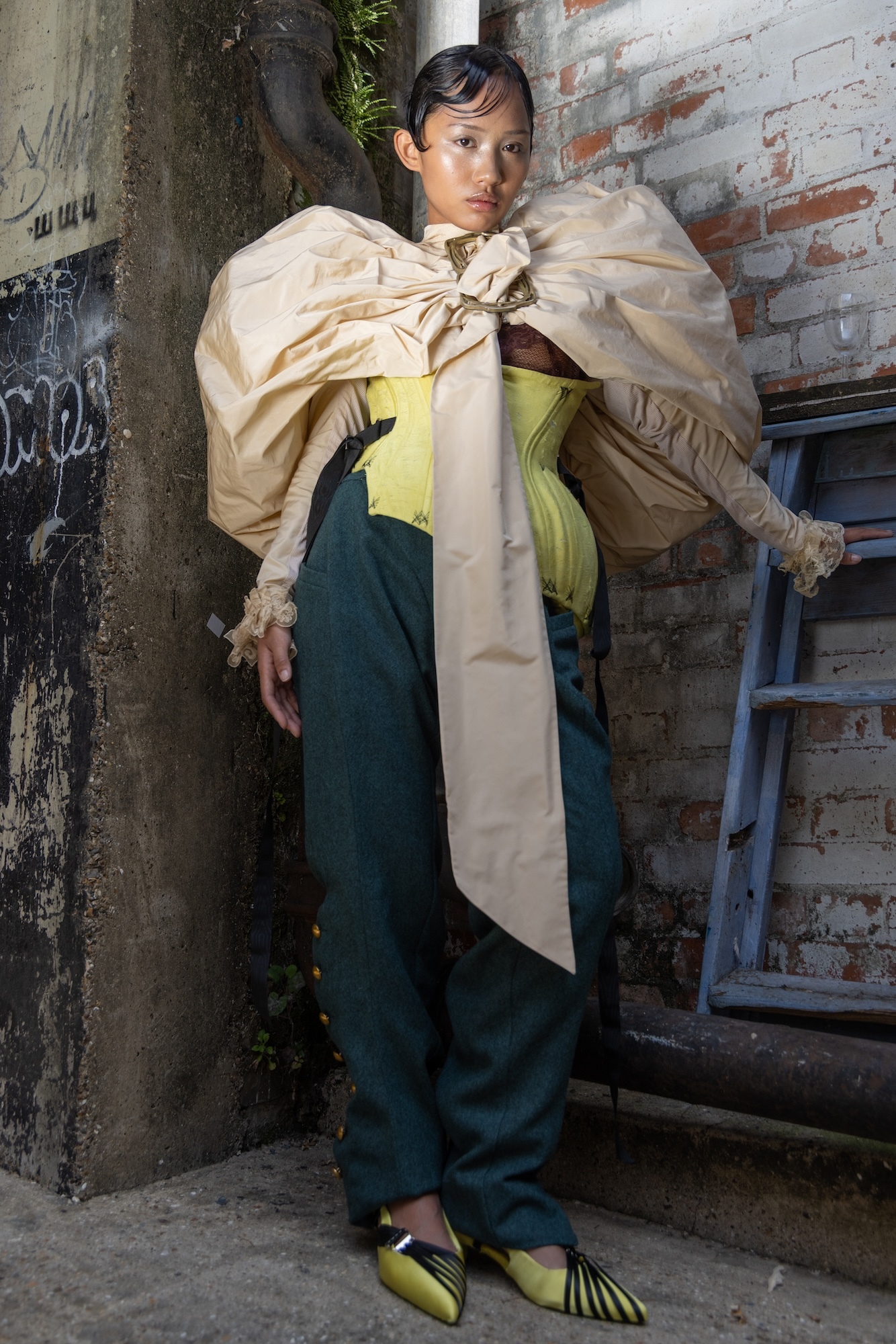 VIP stylist and GFW Ambassador Phoebe Lettice Thompson selected this year’s designers to feature and handed over the curation to the six student teams, each consisting of students from a mix of universities shooting looks from different fashion design.