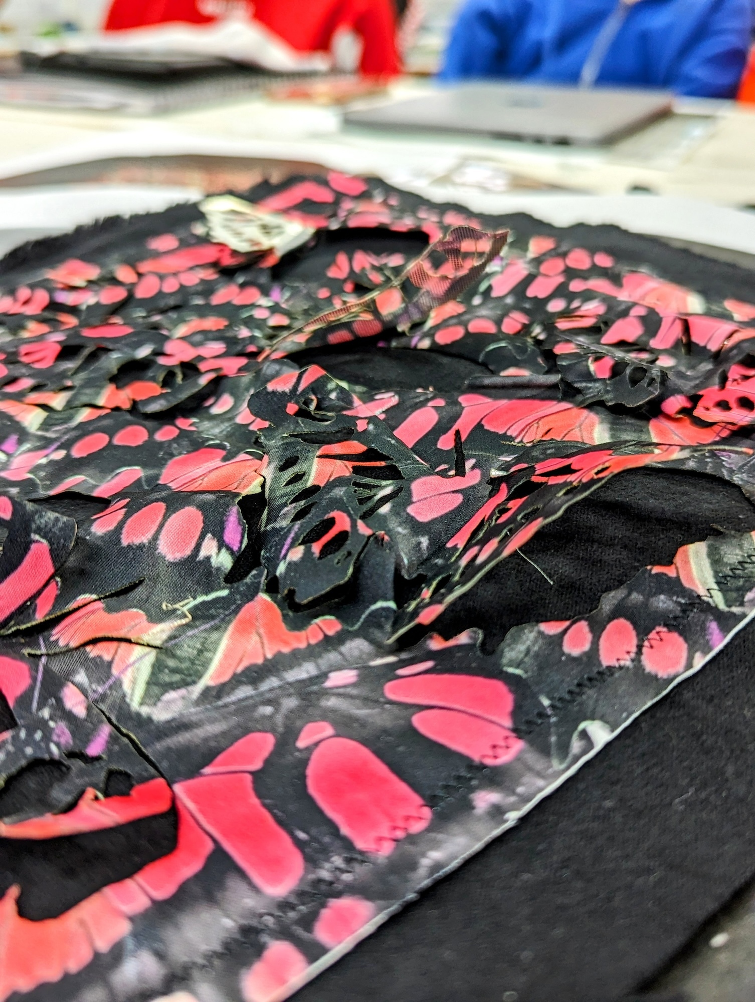 “In terms of the creative scope and direction, students were asked to design something that was inspired by nature, butterflies, birds of paradise, feathers, and aquatic life. And when it came to the practical skills involved, the final garments needed to feature an appliqued print, an embellishment, an embroidery, or a mix of those.
