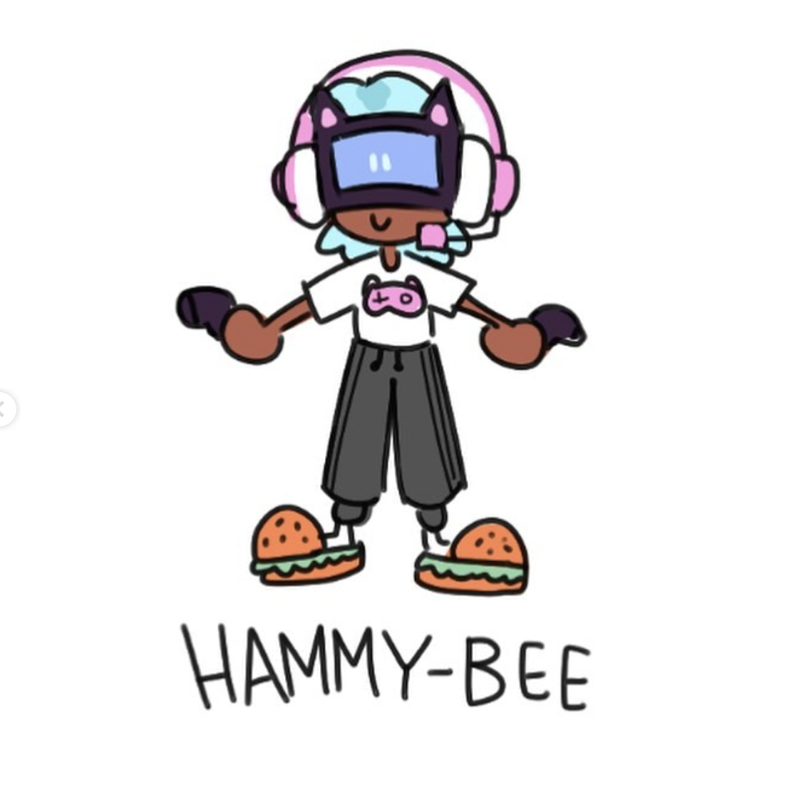 “Hammy-Bee was inspired by my friends, mostly,” Sarah explains. “Just seeing people at university […] colourful hair, wearing casual clothes…”