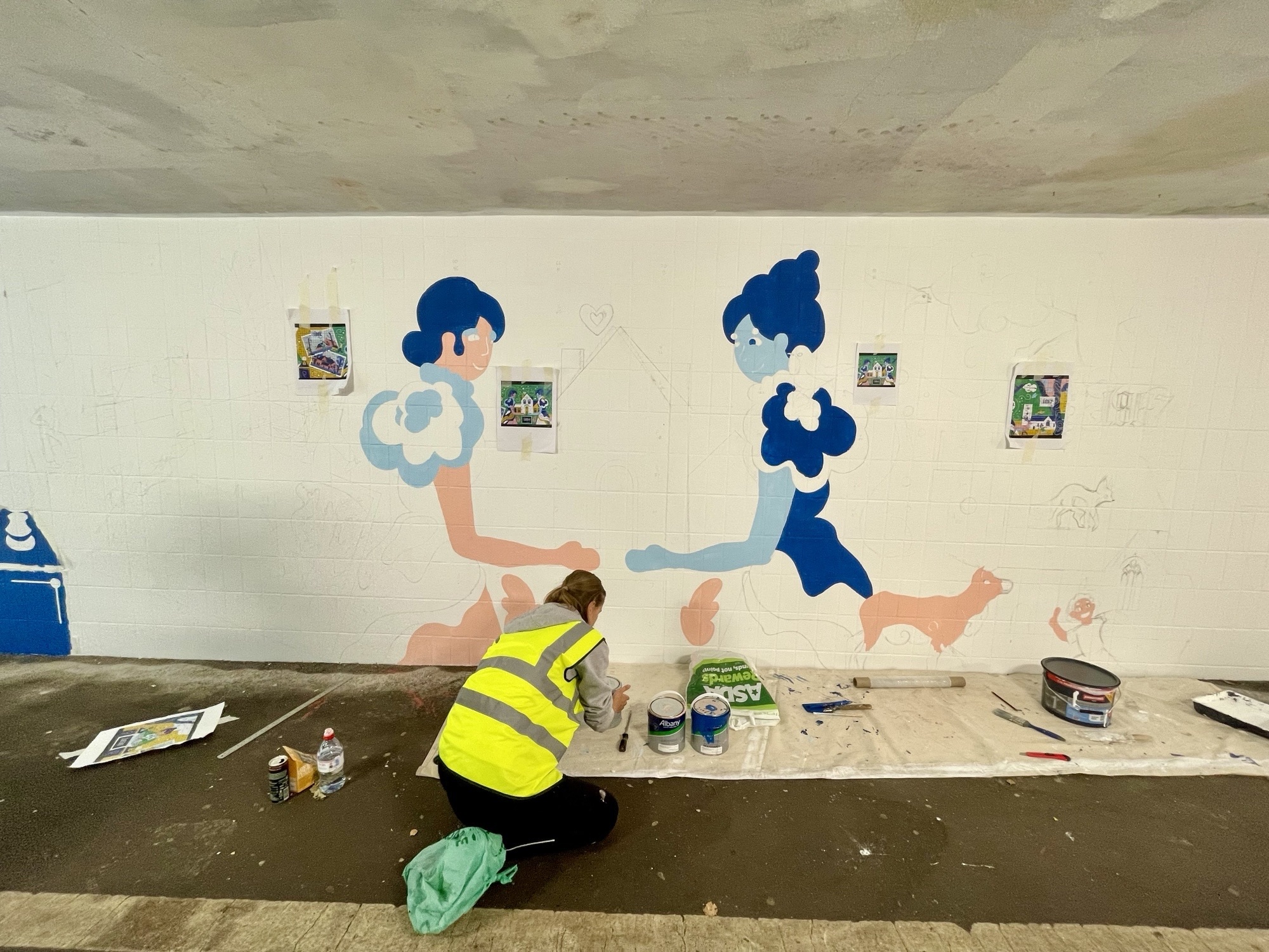 “This is their first time designing and painting a mural, and the install crew of students and staff have completely knocked it out of the park – in just two short weeks we’ve transformed this grimy subway into a celebration of Talbot Village history and cultural. Long may it brighten up people commutes!”