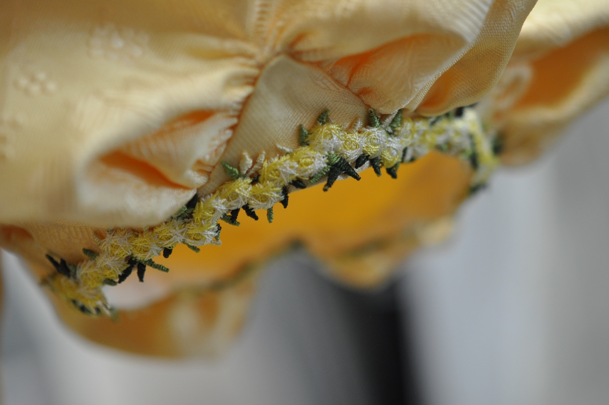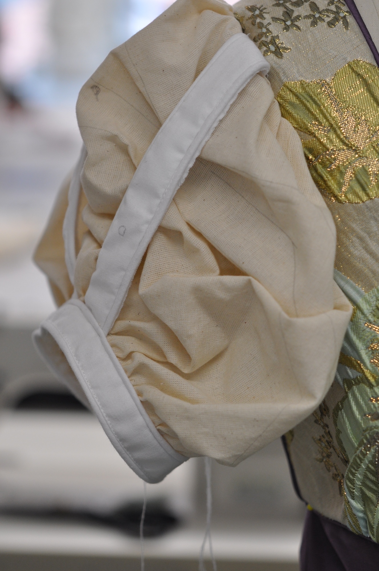 “The sleeves are based on some I saw at the Worthing archive, I looked at bodices from the 1810s to get some ideas of how they would be made and there was so much piping, they really loved piping, so I’ve piped around the hem and there’s pipe on the panes.”