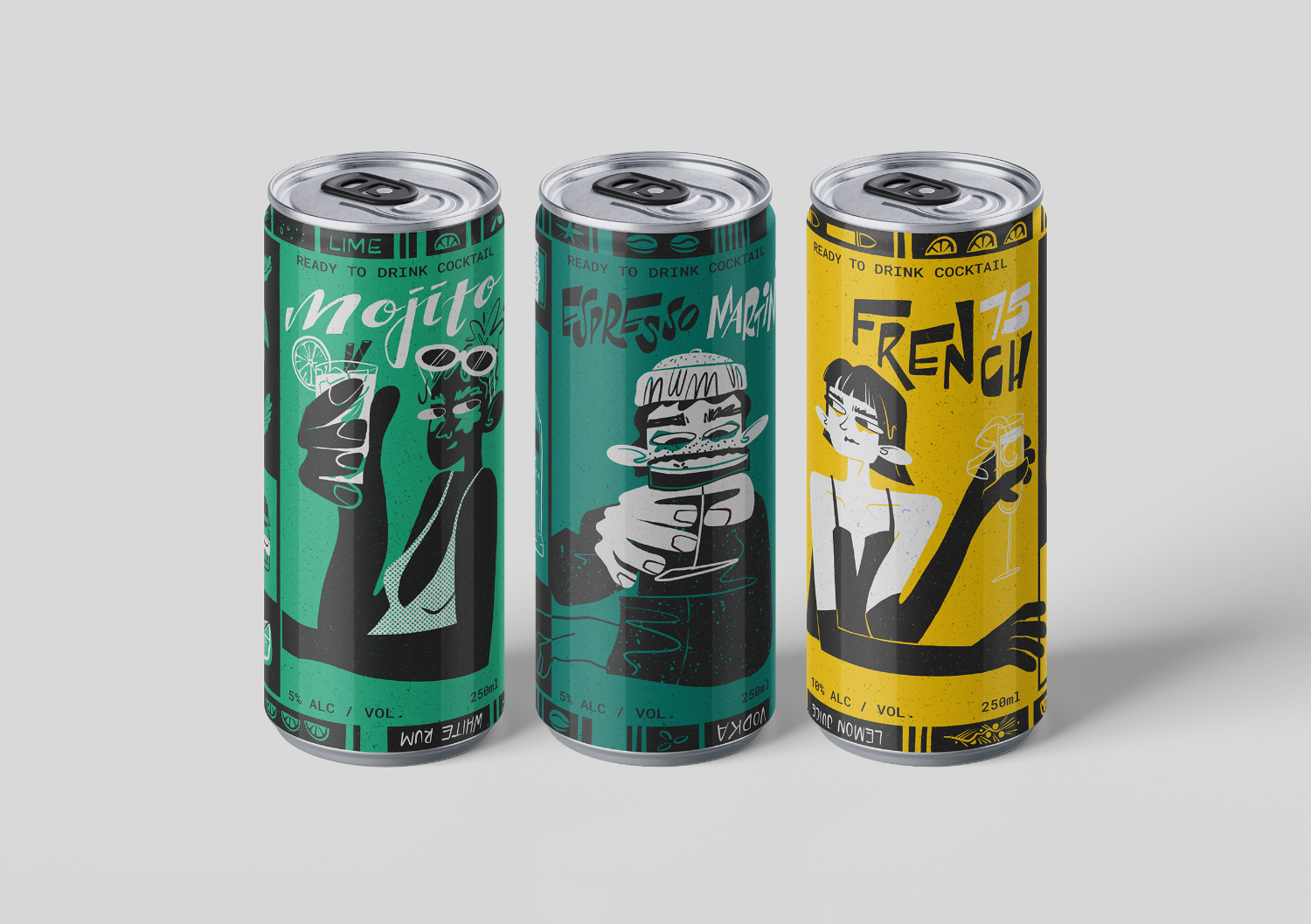 Ready to Drink Cocktail Cans was part of my Pre-Major Project, a self-directed project I created to develop my style and bring more motion into my practice,” Léane explains. “The idea was to design cocktail cans and promote them through animated GIFs for social media, almost like visual recipes that show the ingredients but also reflect the story behind each drink.